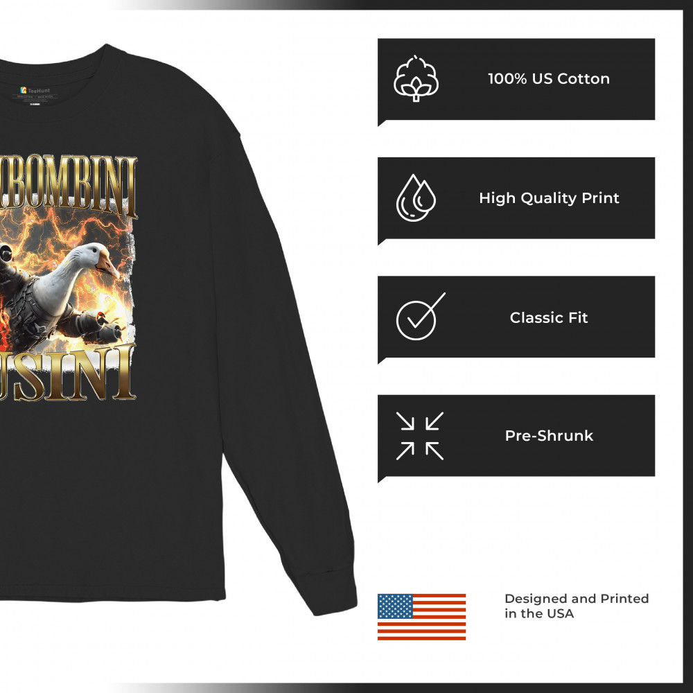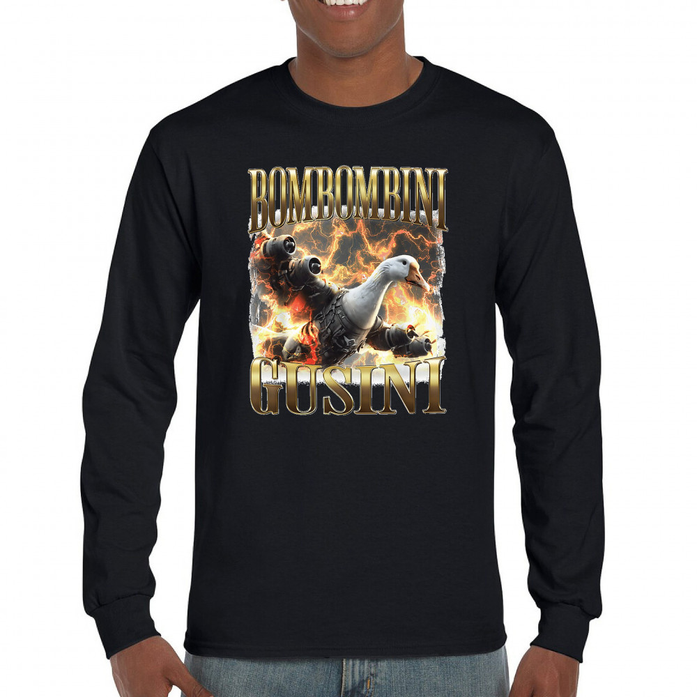 Bombombini Gusini is meme chaos at Mach speed. Featuring a mechanized goose powered by pure Italian Brainrot energy, this design blends cursed-core humor, Gen Z absurdity, ironic fashion, and weirdcore visuals. Perfect for animal meme fans, TikTok-core addicts, and anyone whose humor is completely unhinged.