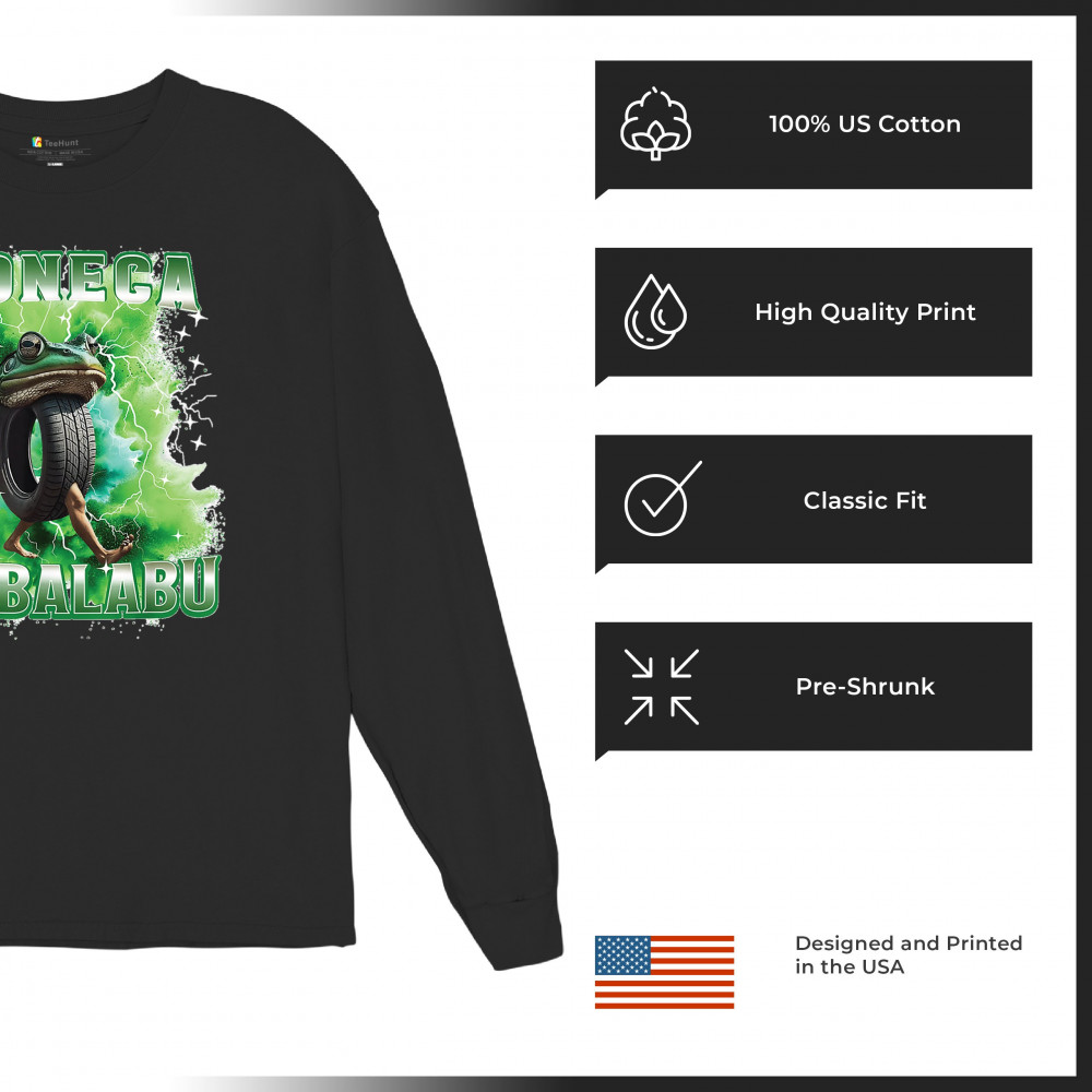 Boneca Ambalabu crashes through meme reality with frog-tire-human madness. A perfect storm of cursed-core fashion, TikTok absurdity, and Gen Z internet energy, this design blends weird animal humor, viral nonsense, and ironic chaos. For fans of brainrot memes and surreal, attention-grabbing streetwear.