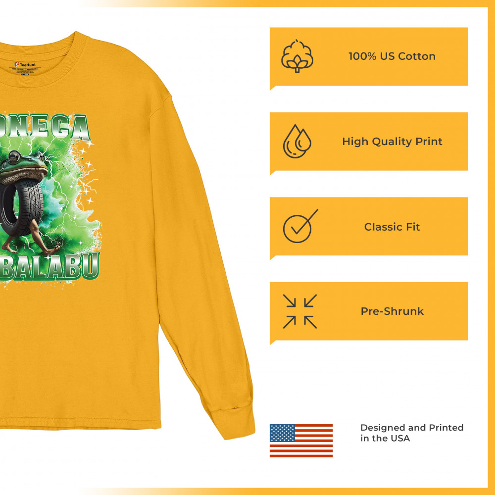 Boneca Ambalabu crashes through meme reality with frog-tire-human madness. A perfect storm of cursed-core fashion, TikTok absurdity, and Gen Z internet energy, this design blends weird animal humor, viral nonsense, and ironic chaos. For fans of brainrot memes and surreal, attention-grabbing streetwear.