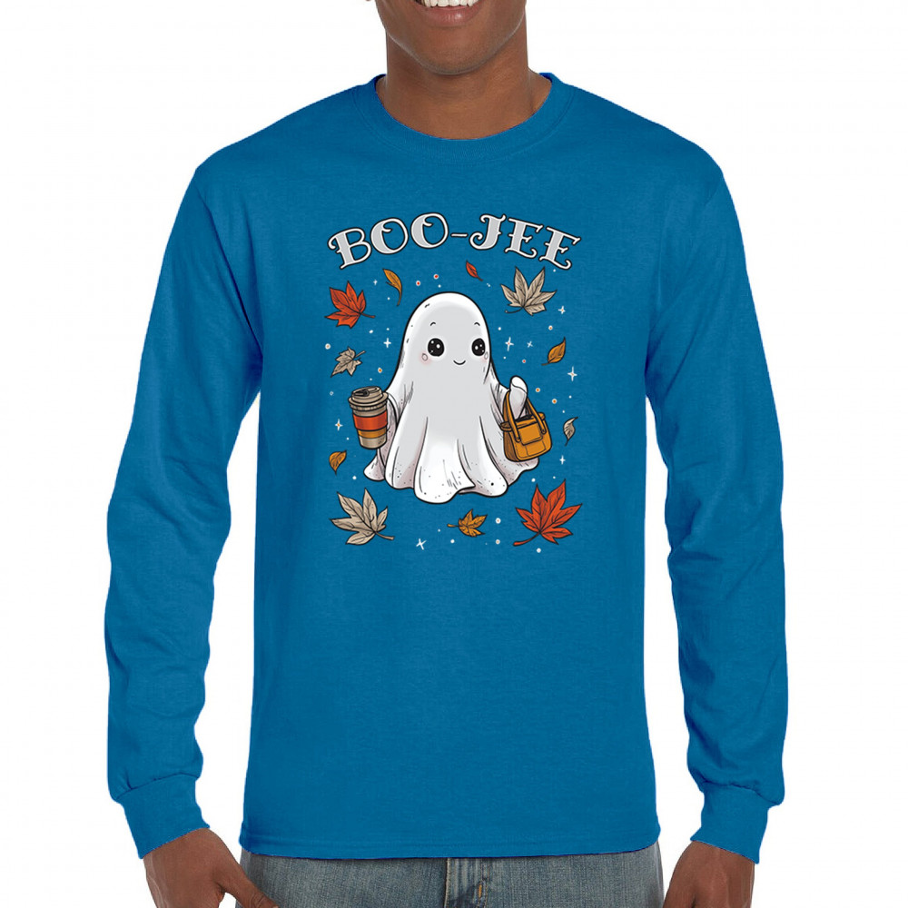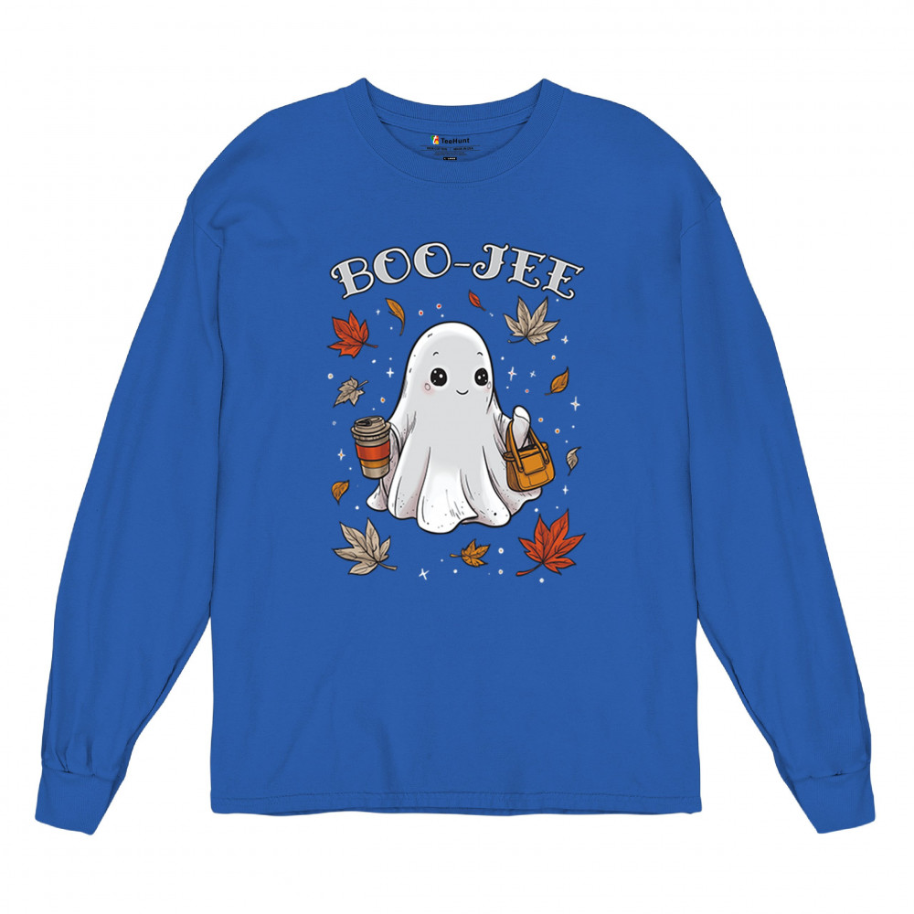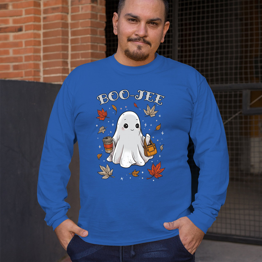 Get in the Halloween spirit with this playful Boo-Jee cute ghost design featuring a funny pumpkin head, cozy candy bucket, and spooky-scary charm. Great for trick or treat fun, haunted house parties, autumn leaves strolls, or sipping coffee on a crisp fall night, this shirt blends festive vibes with seasonal style. Perfect for anyone who loves Halloween fun and cozy fall flair.