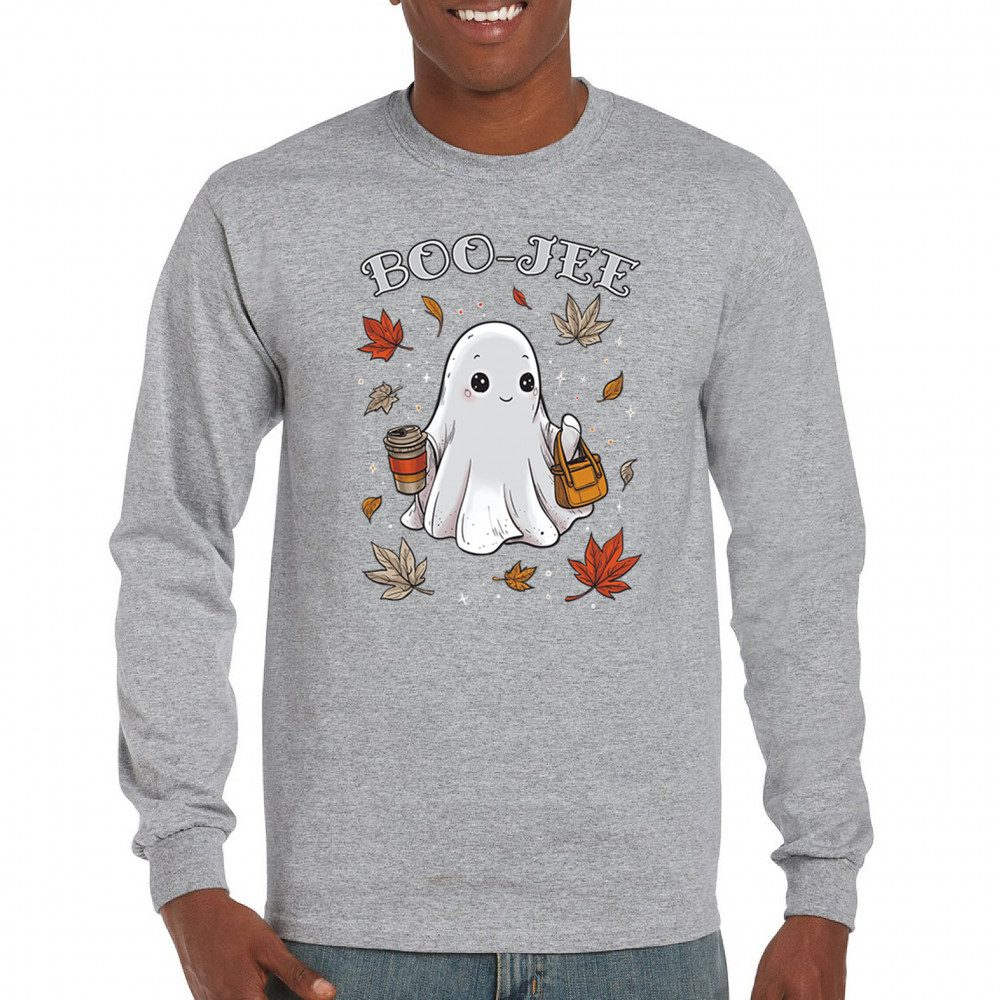 Get in the Halloween spirit with this playful Boo-Jee cute ghost design featuring a funny pumpkin head, cozy candy bucket, and spooky-scary charm. Great for trick or treat fun, haunted house parties, autumn leaves strolls, or sipping coffee on a crisp fall night, this shirt blends festive vibes with seasonal style. Perfect for anyone who loves Halloween fun and cozy fall flair.