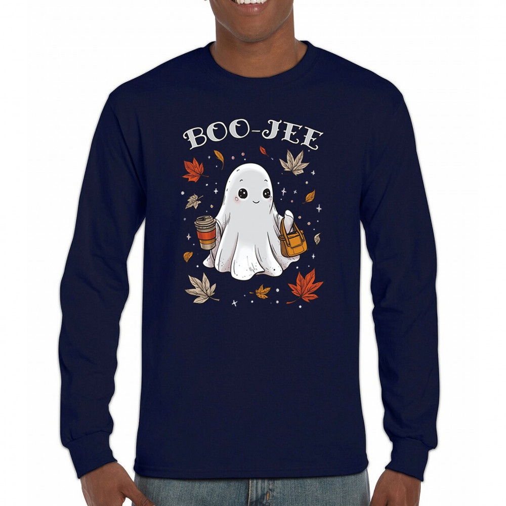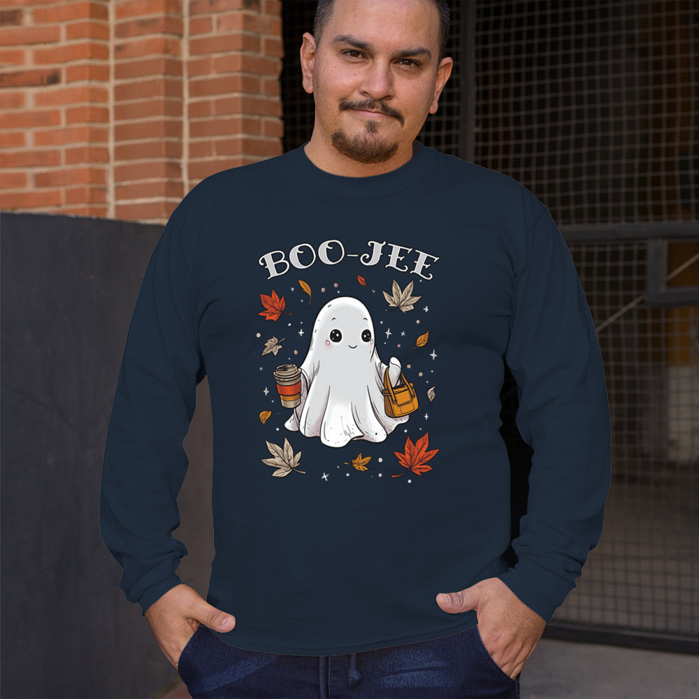 Get in the Halloween spirit with this playful Boo-Jee cute ghost design featuring a funny pumpkin head, cozy candy bucket, and spooky-scary charm. Great for trick or treat fun, haunted house parties, autumn leaves strolls, or sipping coffee on a crisp fall night, this shirt blends festive vibes with seasonal style. Perfect for anyone who loves Halloween fun and cozy fall flair.