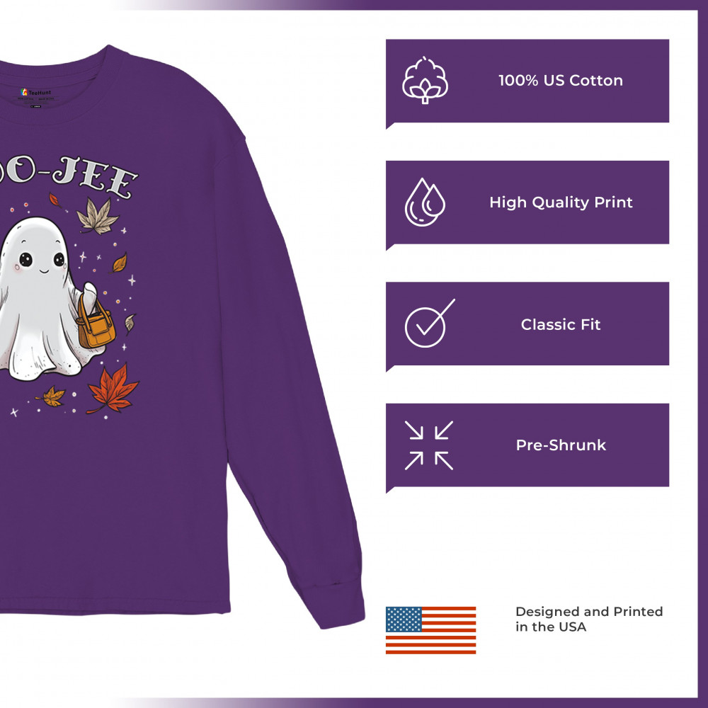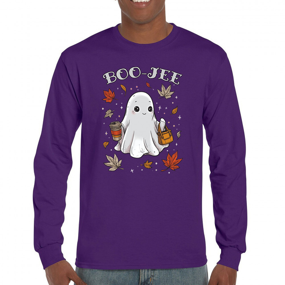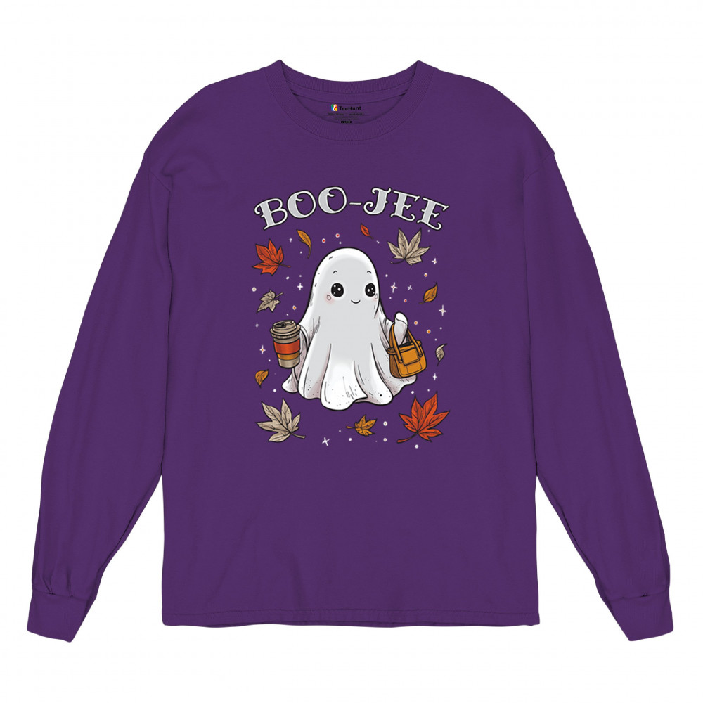 Get in the Halloween spirit with this playful Boo-Jee cute ghost design featuring a funny pumpkin head, cozy candy bucket, and spooky-scary charm. Great for trick or treat fun, haunted house parties, autumn leaves strolls, or sipping coffee on a crisp fall night, this shirt blends festive vibes with seasonal style. Perfect for anyone who loves Halloween fun and cozy fall flair.