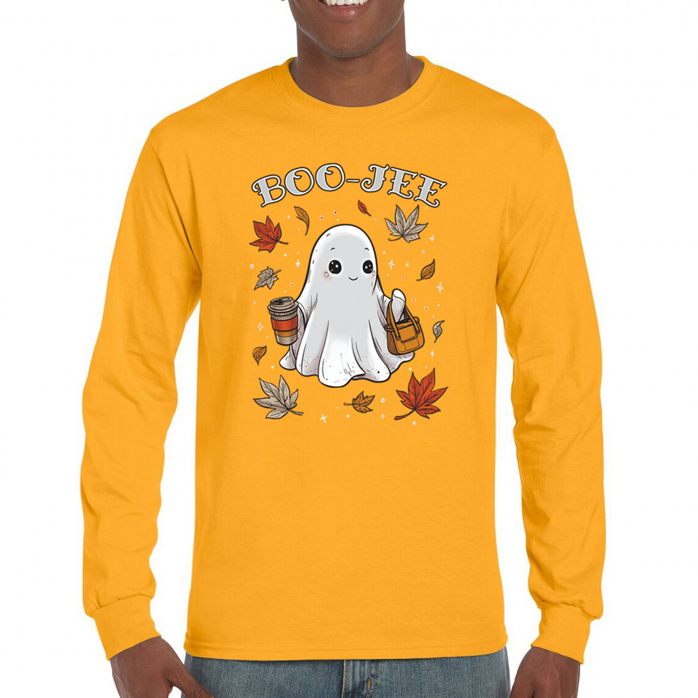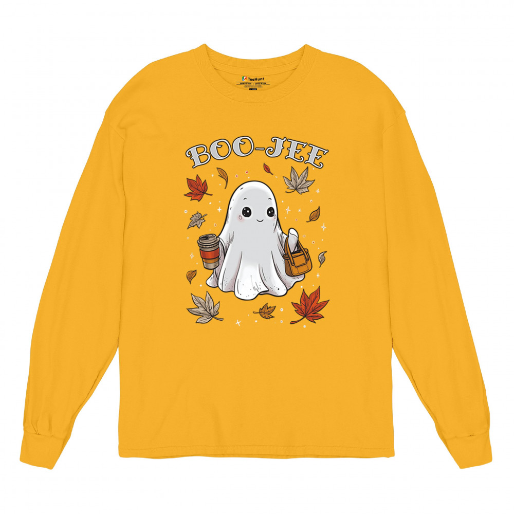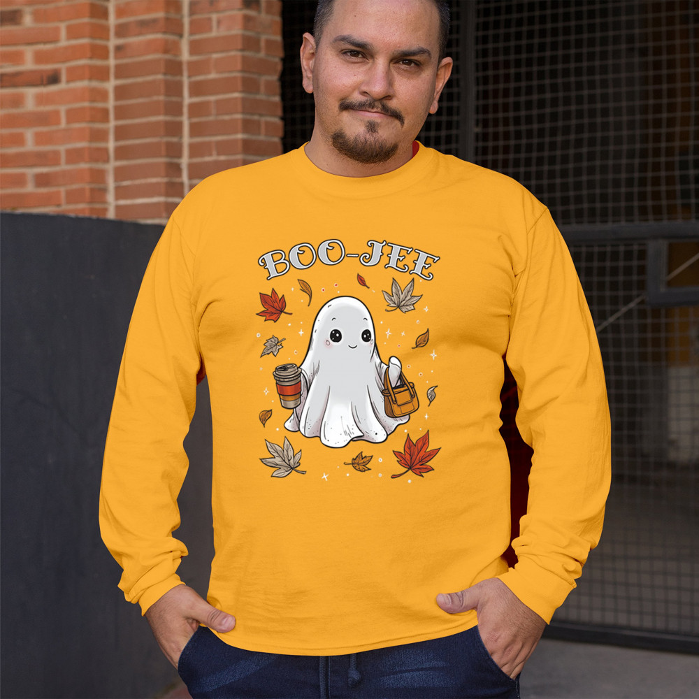 Get in the Halloween spirit with this playful Boo-Jee cute ghost design featuring a funny pumpkin head, cozy candy bucket, and spooky-scary charm. Great for trick or treat fun, haunted house parties, autumn leaves strolls, or sipping coffee on a crisp fall night, this shirt blends festive vibes with seasonal style. Perfect for anyone who loves Halloween fun and cozy fall flair.