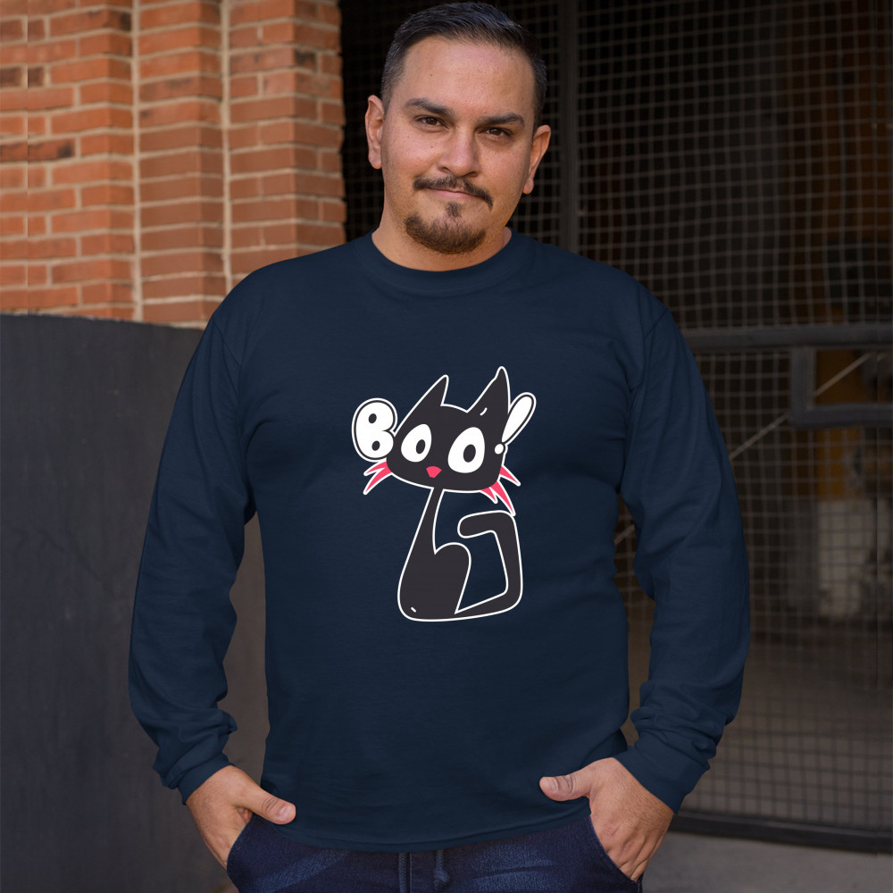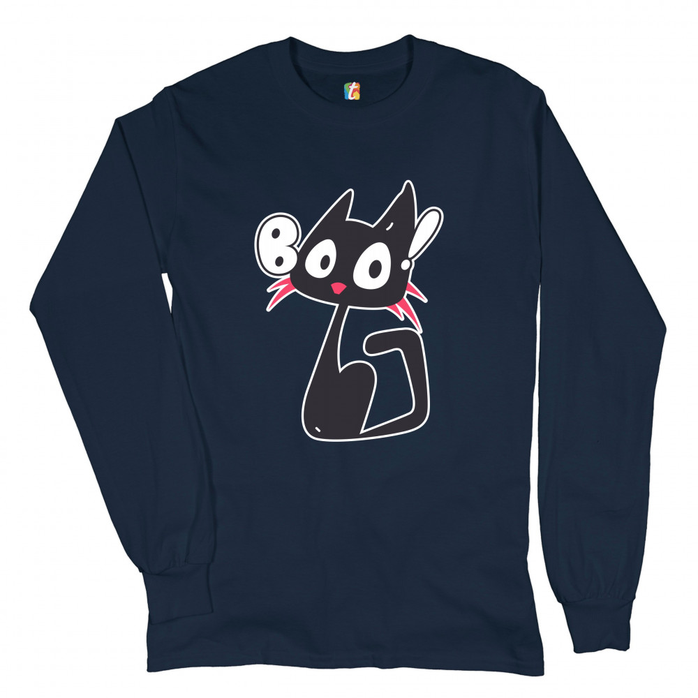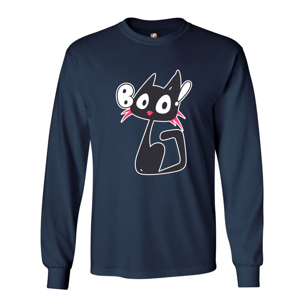 BOO KITTEN long sleeve t-shirt happy halloween trick-or-treating funny cat navy blue