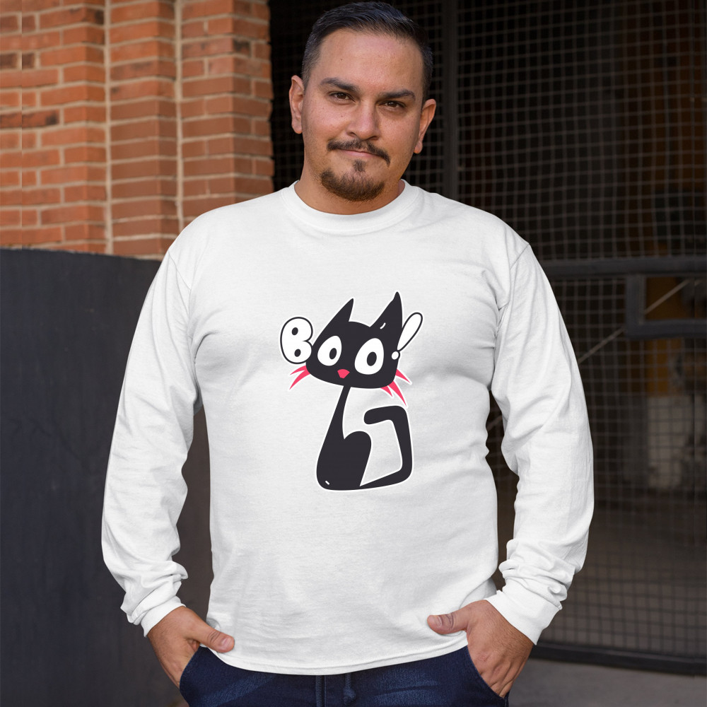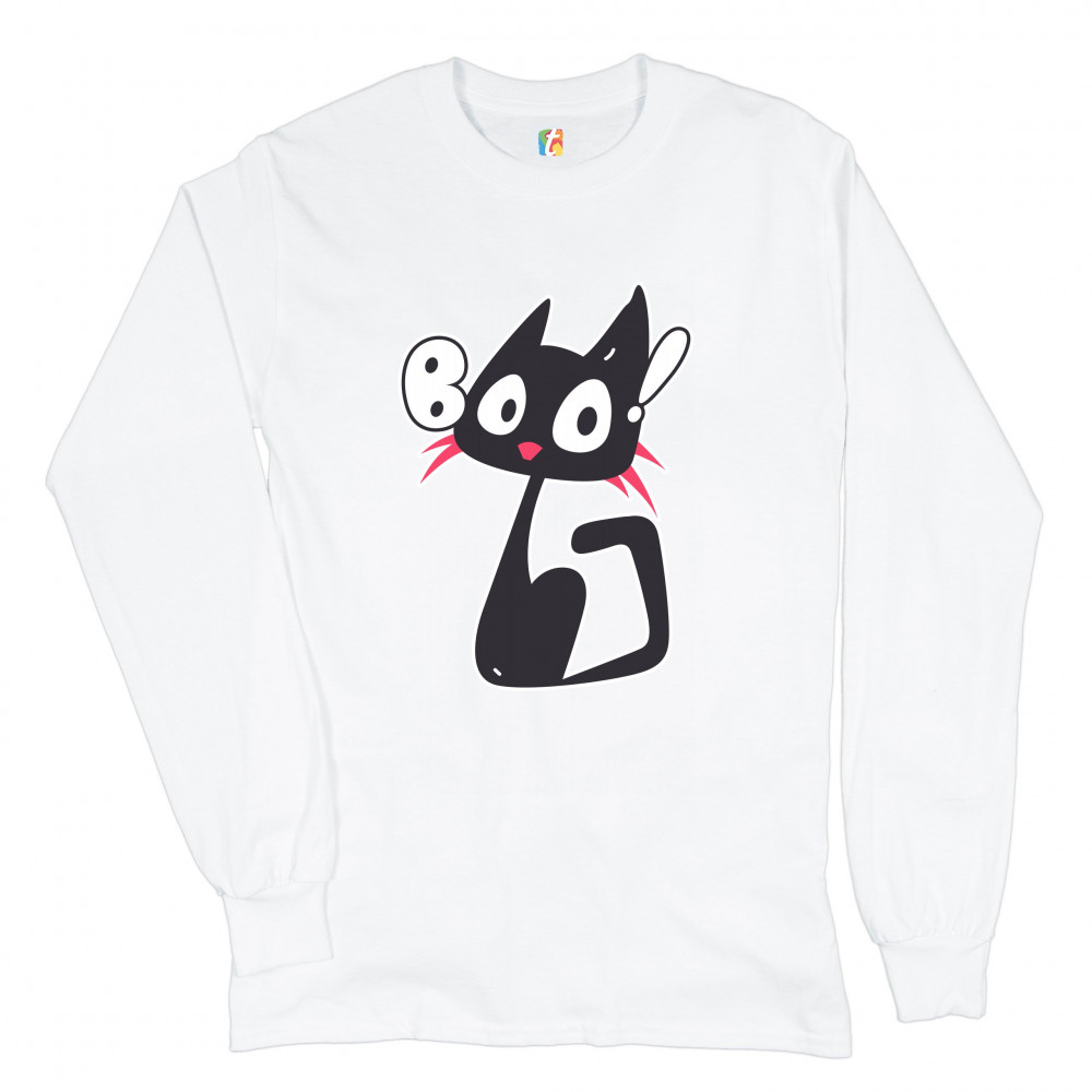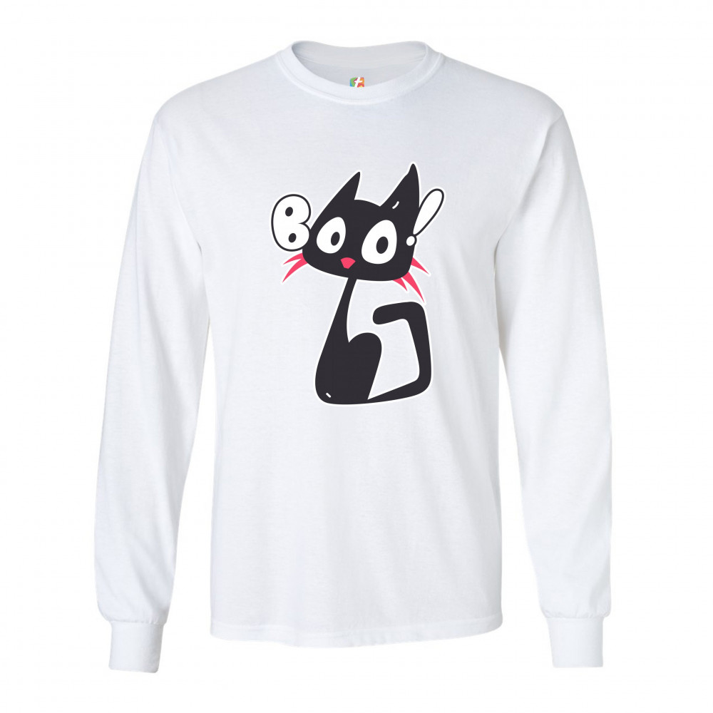 BOO KITTEN long sleeve t-shirt happy halloween trick-or-treating funny cat white