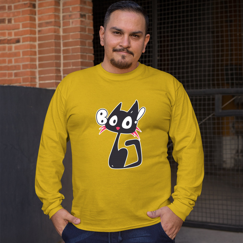 BOO KITTEN long sleeve t-shirt happy halloween trick-or-treating funny cat yellow