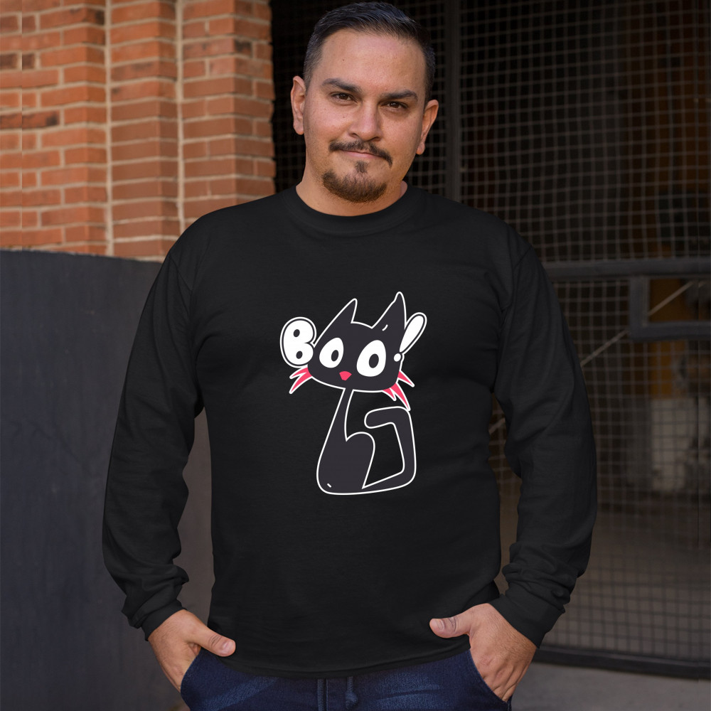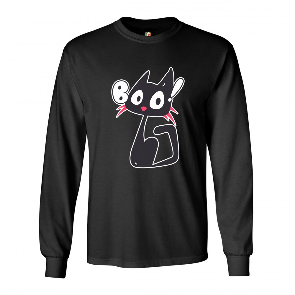 BOO KITTEN long sleeve t-shirt happy halloween trick-or-treating funny cat black