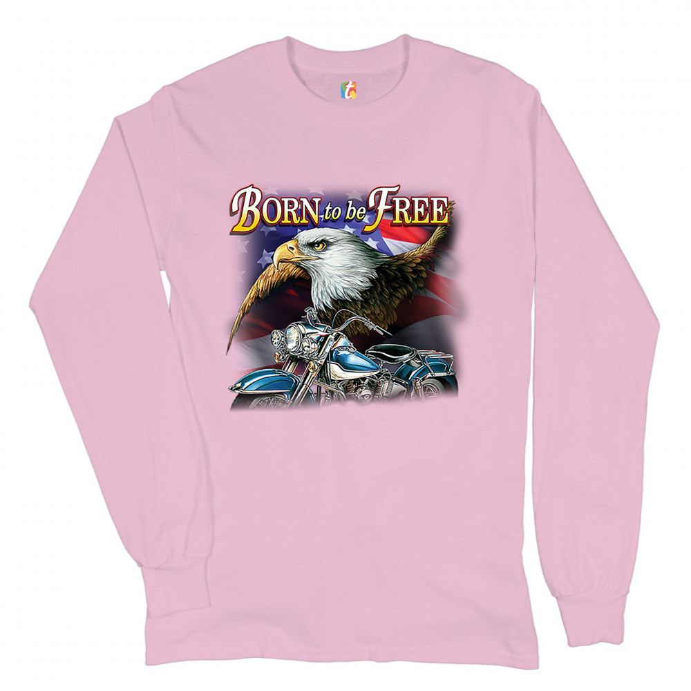 BORN TO BE FREE long sleeve t-shirt american bald eagle chopper biker patriotic pink