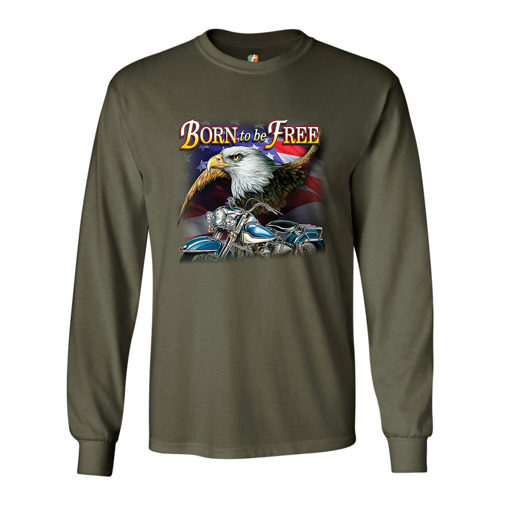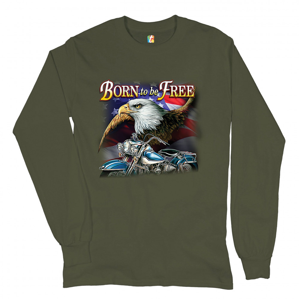 BORN TO BE FREE long sleeve t-shirt american bald eagle chopper biker patriotic military green