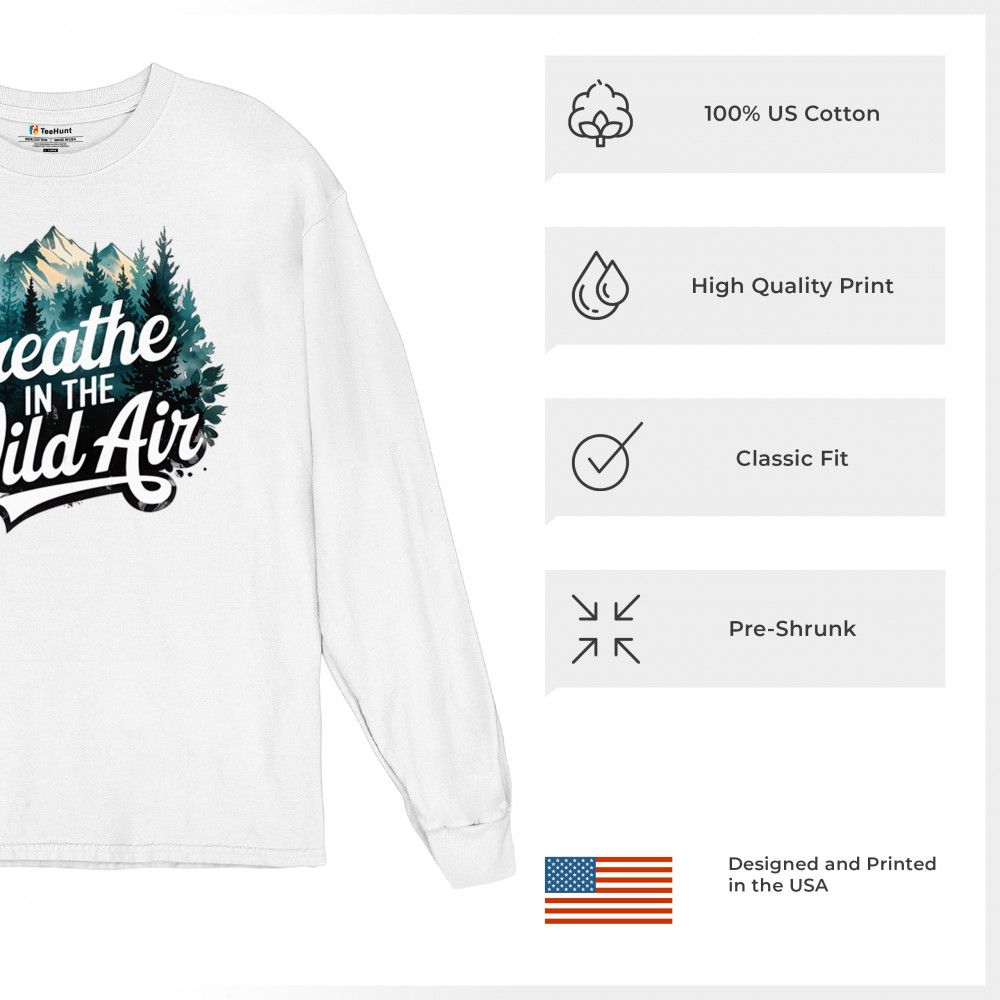 Breathe in the Wild Air brings nature to your wardrobe. Whether you're a forest lover, trail enthusiast, or weekend hiker, this design embraces adventure, wilderness vibes, and peaceful campfire moments. Ideal for outdoorsmen, off-grid travelers, and national park explorers seeking freedom in the trees.