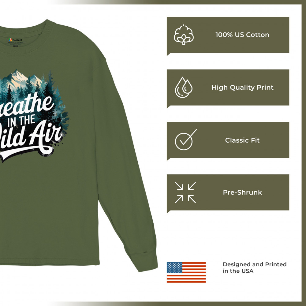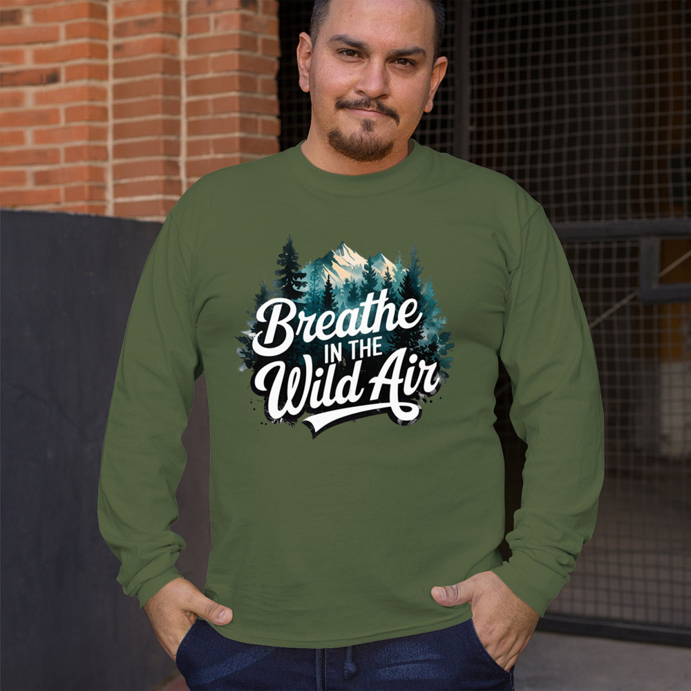 Breathe in the Wild Air brings nature to your wardrobe. Whether you're a forest lover, trail enthusiast, or weekend hiker, this design embraces adventure, wilderness vibes, and peaceful campfire moments. Ideal for outdoorsmen, off-grid travelers, and national park explorers seeking freedom in the trees.