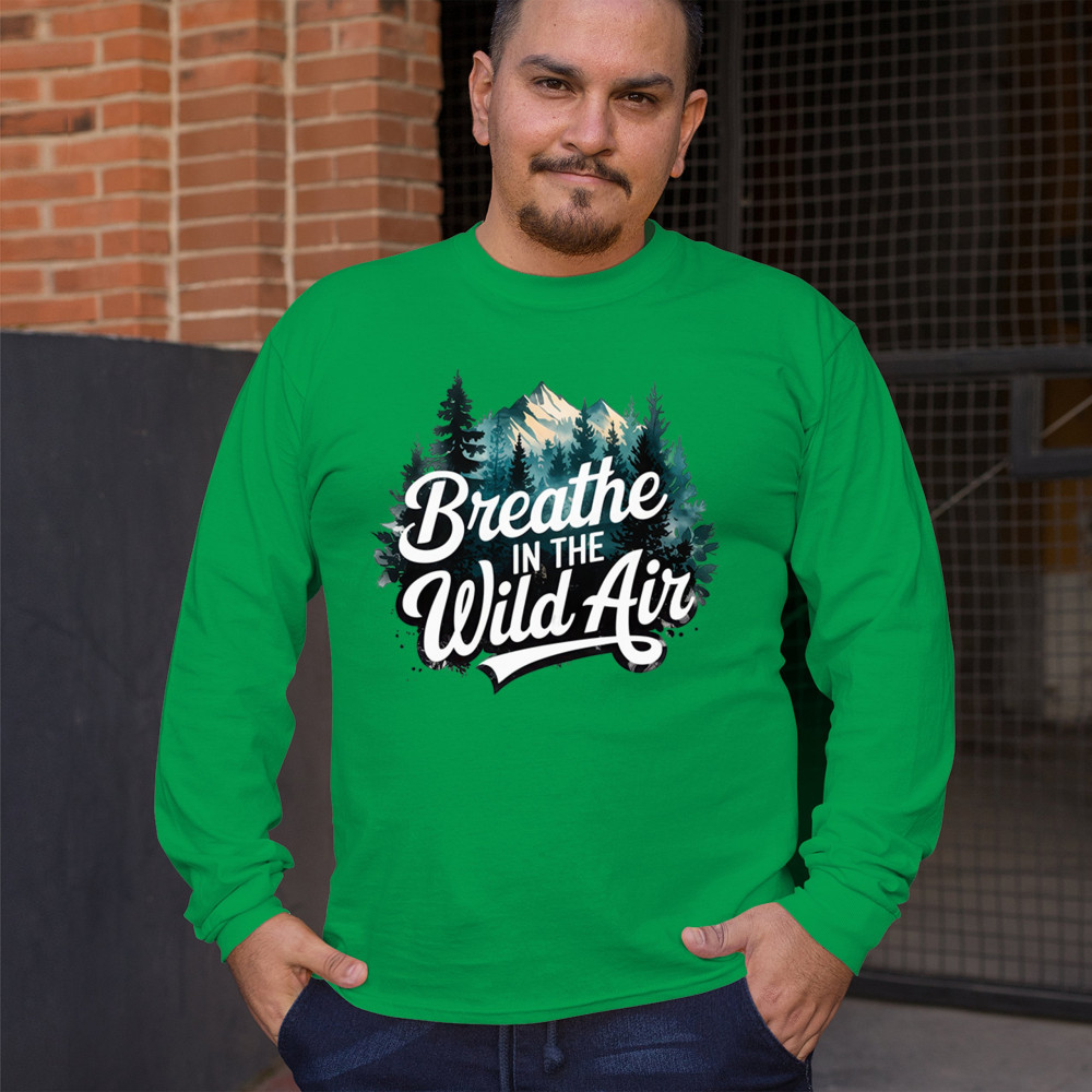 Breathe in the Wild Air brings nature to your wardrobe. Whether you're a forest lover, trail enthusiast, or weekend hiker, this design embraces adventure, wilderness vibes, and peaceful campfire moments. Ideal for outdoorsmen, off-grid travelers, and national park explorers seeking freedom in the trees.
