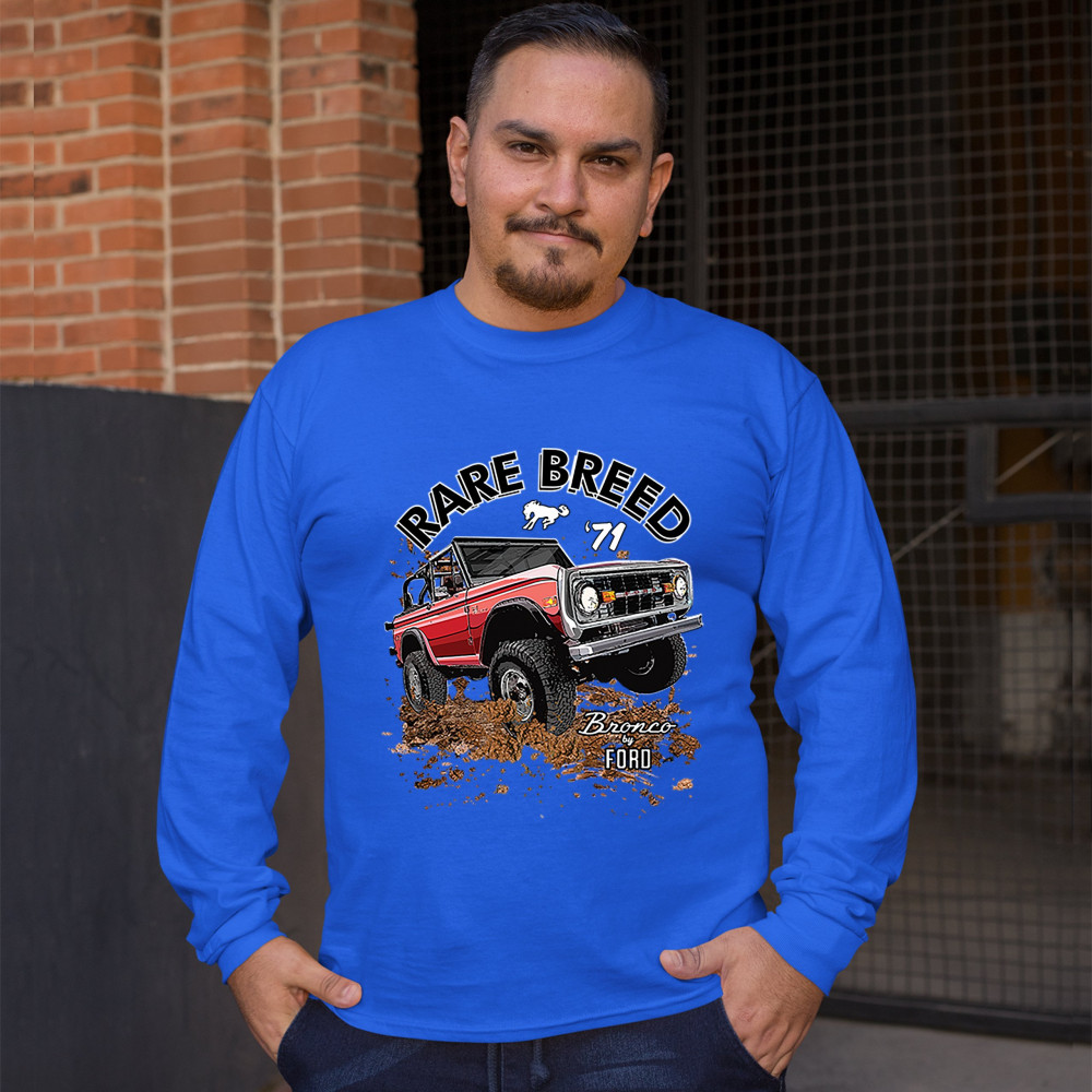 BRONCO BY FORD long sleeve t-shirt rare breed '71 offroad ford truck licensed royal blue