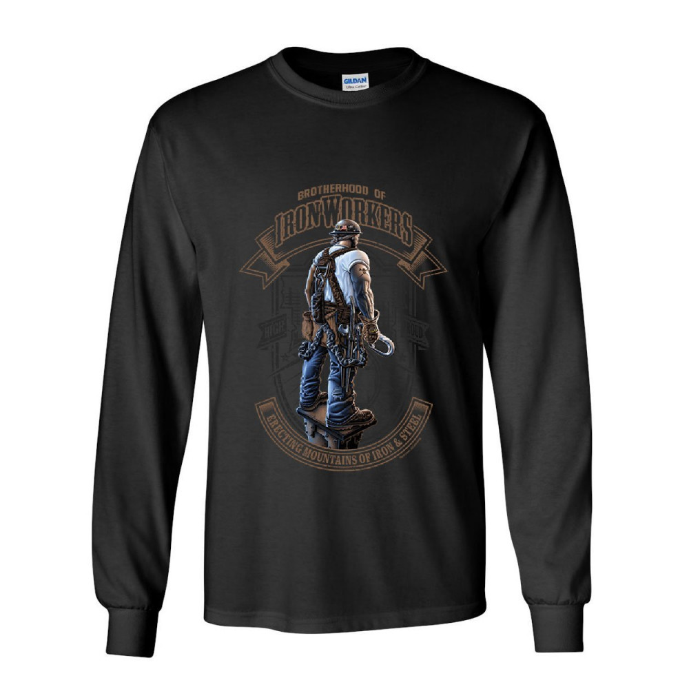 IRONWORKERS - BACKBONE OF AMERICA brotherhood of ironworkers long sleeve t-shirt blue collar job construction tee black