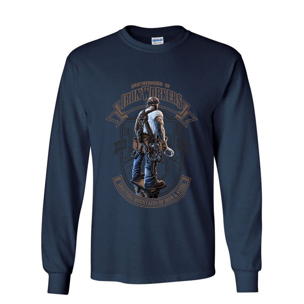 IRONWORKERS - BACKBONE OF AMERICA brotherhood of ironworkers long sleeve t-shirt blue collar job construction tee navy blue