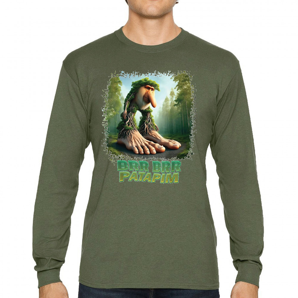 Brr Brr Patapim is forest-core gone full brainrot. Featuring a massive-footed tree-beast with cryptid energy, this design blends cursed meme culture, TikTok humor, weirdcore visuals, and surreal Gen Z fashion. It’s ideal for fans of absurd monster mashups and internet chaos fits.