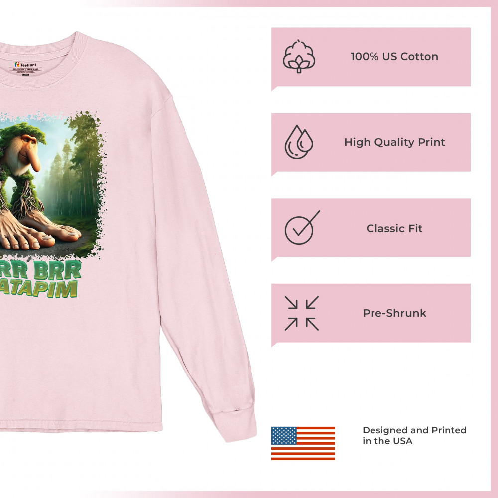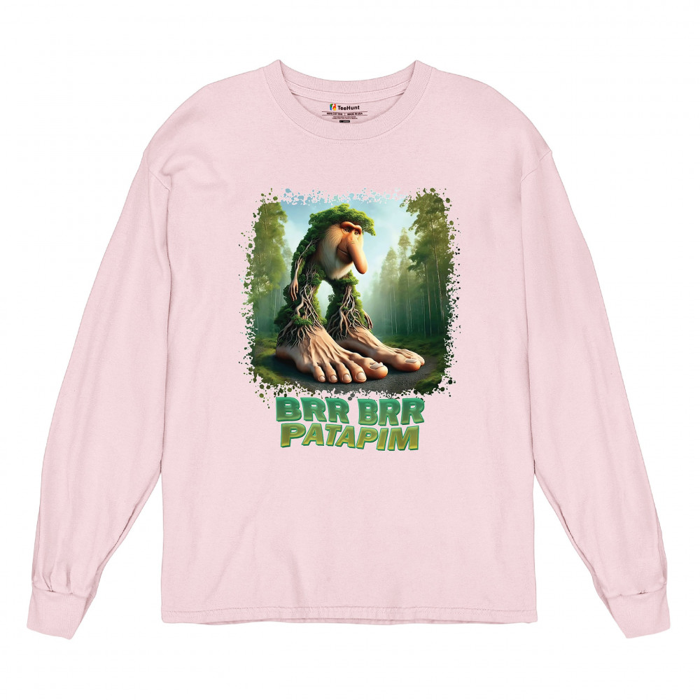 Brr Brr Patapim is forest-core gone full brainrot. Featuring a massive-footed tree-beast with cryptid energy, this design blends cursed meme culture, TikTok humor, weirdcore visuals, and surreal Gen Z fashion. It’s ideal for fans of absurd monster mashups and internet chaos fits.