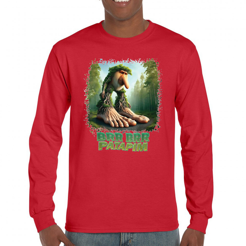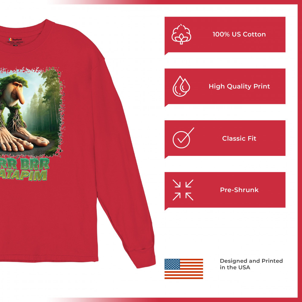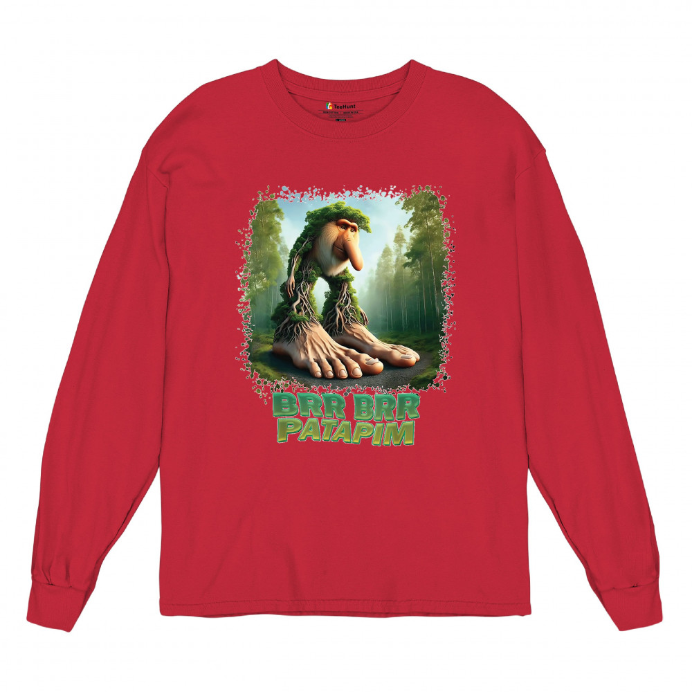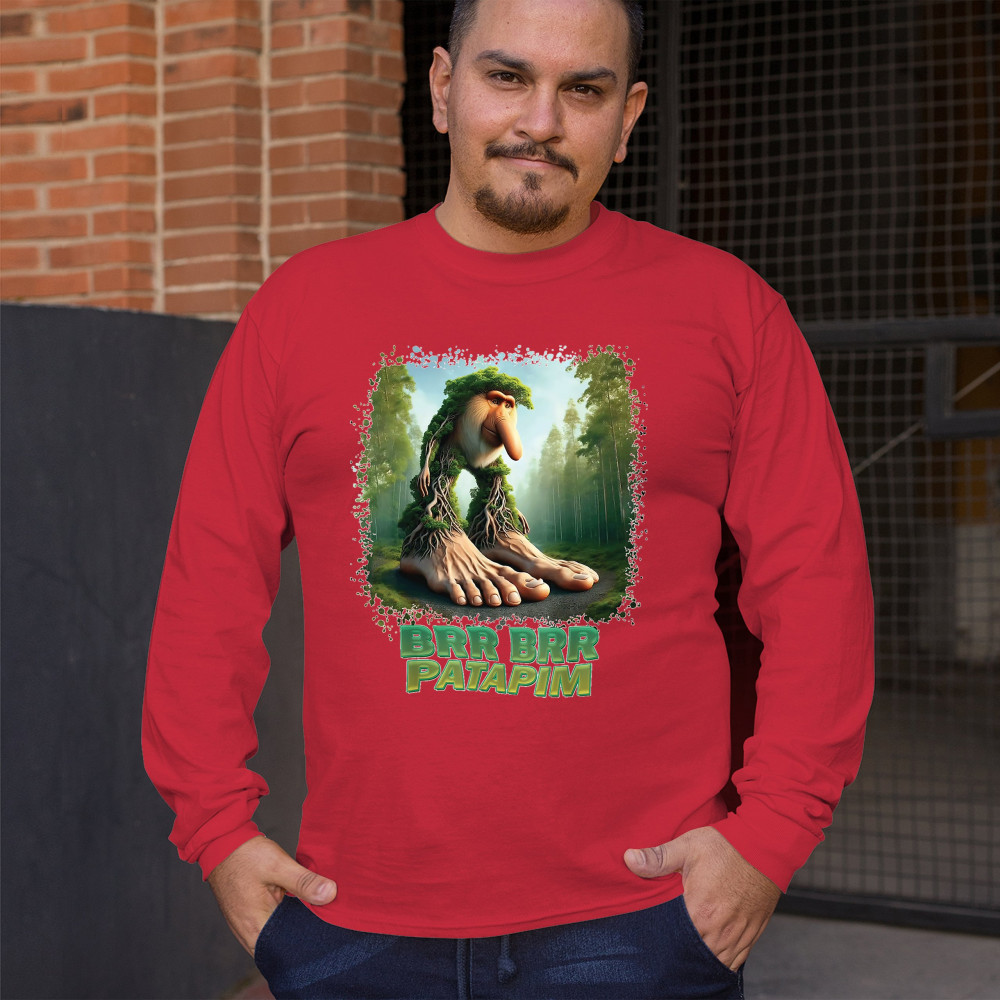 Brr Brr Patapim is forest-core gone full brainrot. Featuring a massive-footed tree-beast with cryptid energy, this design blends cursed meme culture, TikTok humor, weirdcore visuals, and surreal Gen Z fashion. It’s ideal for fans of absurd monster mashups and internet chaos fits.