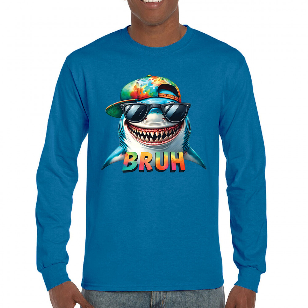 Ride the wave of meme culture with this Bruh Shark Gen Z design, featuring goofy cartoon shark humor, Sigma Aura vibes, and Italian Brainrot energy. Perfect for fans of bruh meme shirts, summer beach vibes, ocean party style, and funny animal meme culture. A must-have for anyone who loves Skibidi Sigma Rizz humor.
