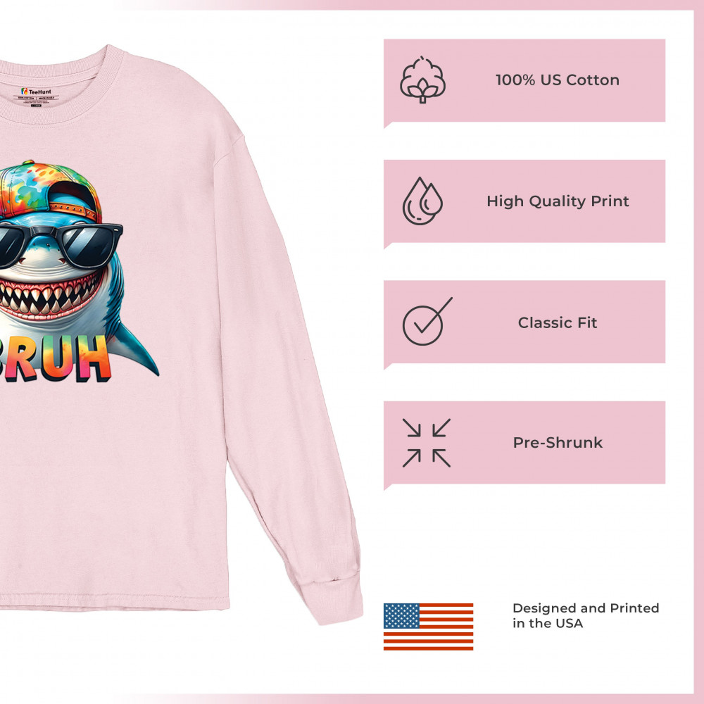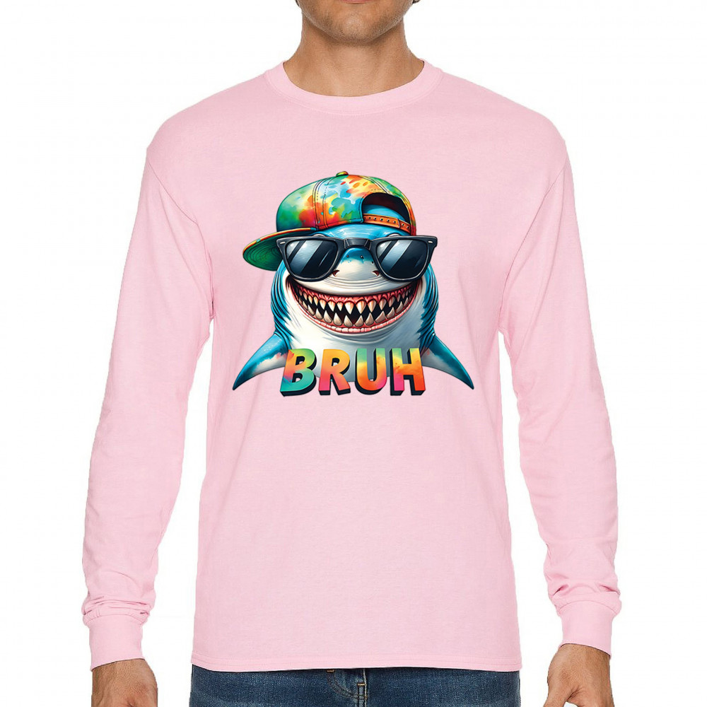 Bruh Shark meme shirt with Gen Z humor, cartoon shark design, summer beach vibes, Sigma Aura, and Italian Brainrot internet humor.