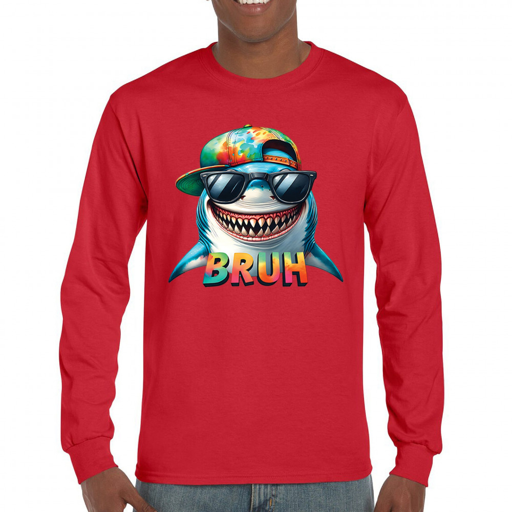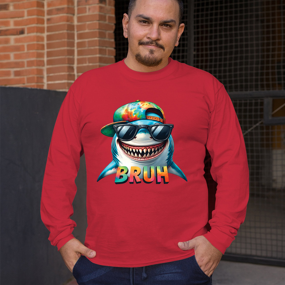 Ride the wave of meme culture with this Bruh Shark Gen Z design, featuring goofy cartoon shark humor, Sigma Aura vibes, and Italian Brainrot energy. Perfect for fans of bruh meme shirts, summer beach vibes, ocean party style, and funny animal meme culture. A must-have for anyone who loves Skibidi Sigma Rizz humor.