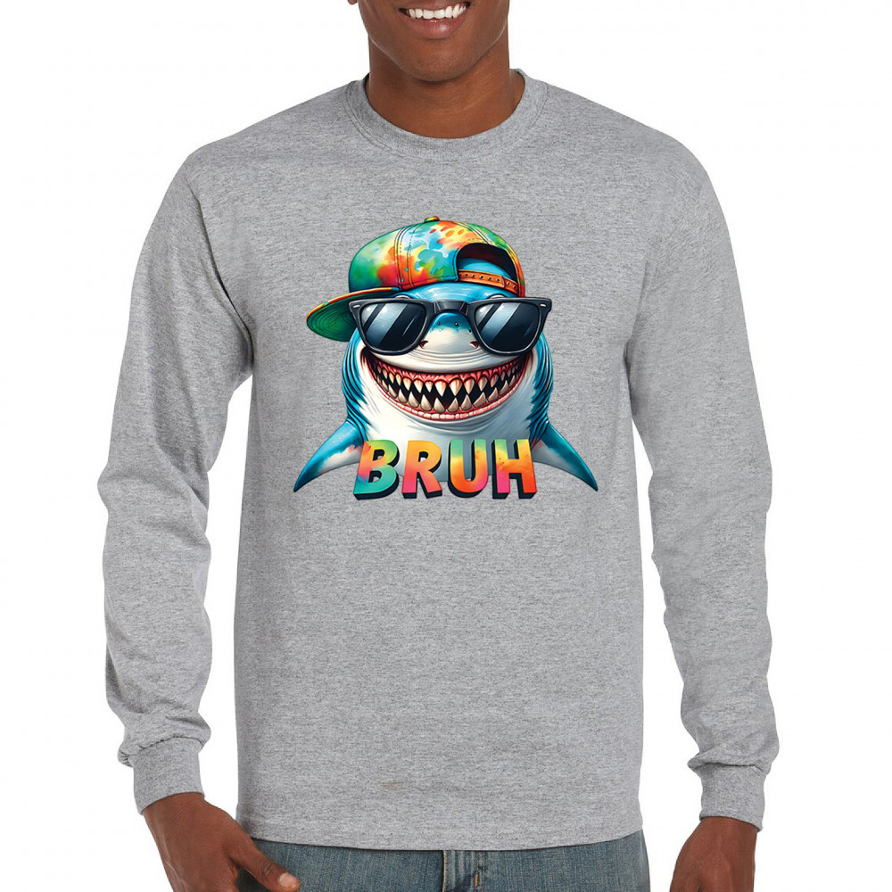 Ride the wave of meme culture with this Bruh Shark Gen Z design, featuring goofy cartoon shark humor, Sigma Aura vibes, and Italian Brainrot energy. Perfect for fans of bruh meme shirts, summer beach vibes, ocean party style, and funny animal meme culture. A must-have for anyone who loves Skibidi Sigma Rizz humor.
