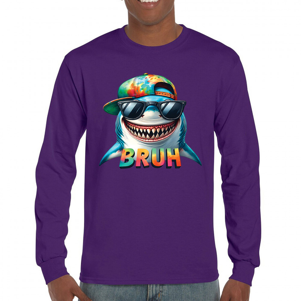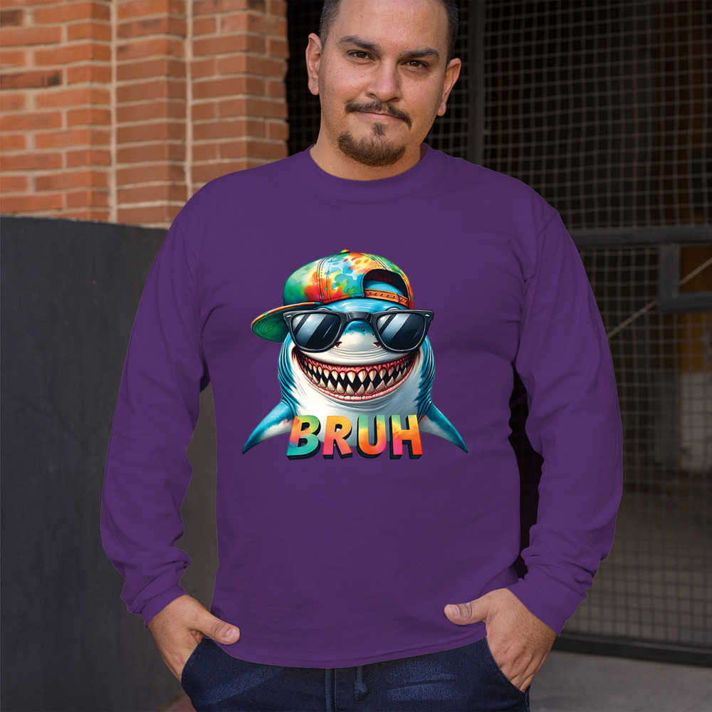 Ride the wave of meme culture with this Bruh Shark Gen Z design, featuring goofy cartoon shark humor, Sigma Aura vibes, and Italian Brainrot energy. Perfect for fans of bruh meme shirts, summer beach vibes, ocean party style, and funny animal meme culture. A must-have for anyone who loves Skibidi Sigma Rizz humor.
