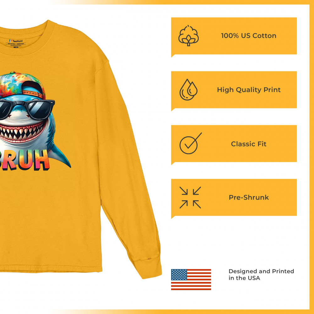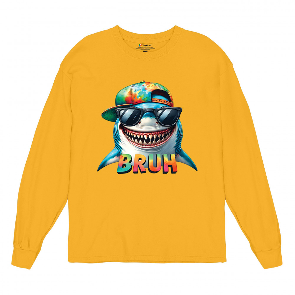 Ride the wave of meme culture with this Bruh Shark Gen Z design, featuring goofy cartoon shark humor, Sigma Aura vibes, and Italian Brainrot energy. Perfect for fans of bruh meme shirts, summer beach vibes, ocean party style, and funny animal meme culture. A must-have for anyone who loves Skibidi Sigma Rizz humor.