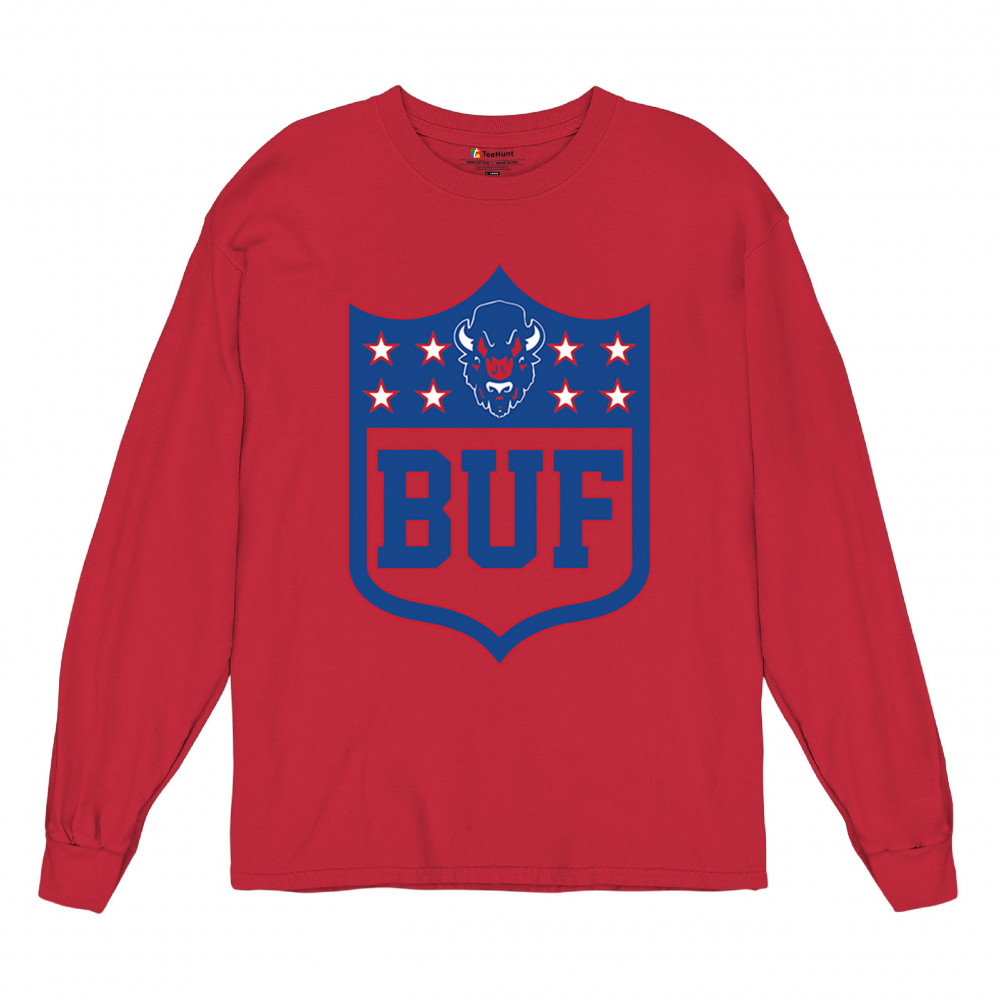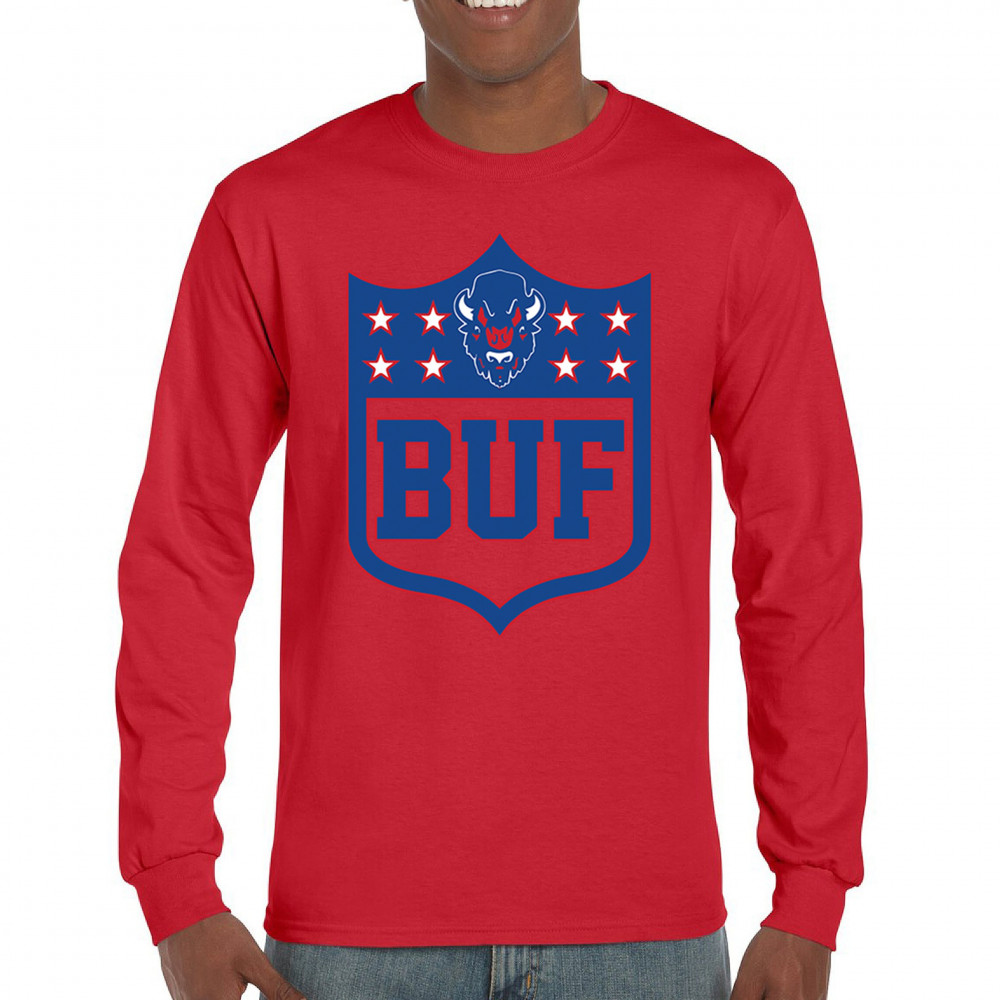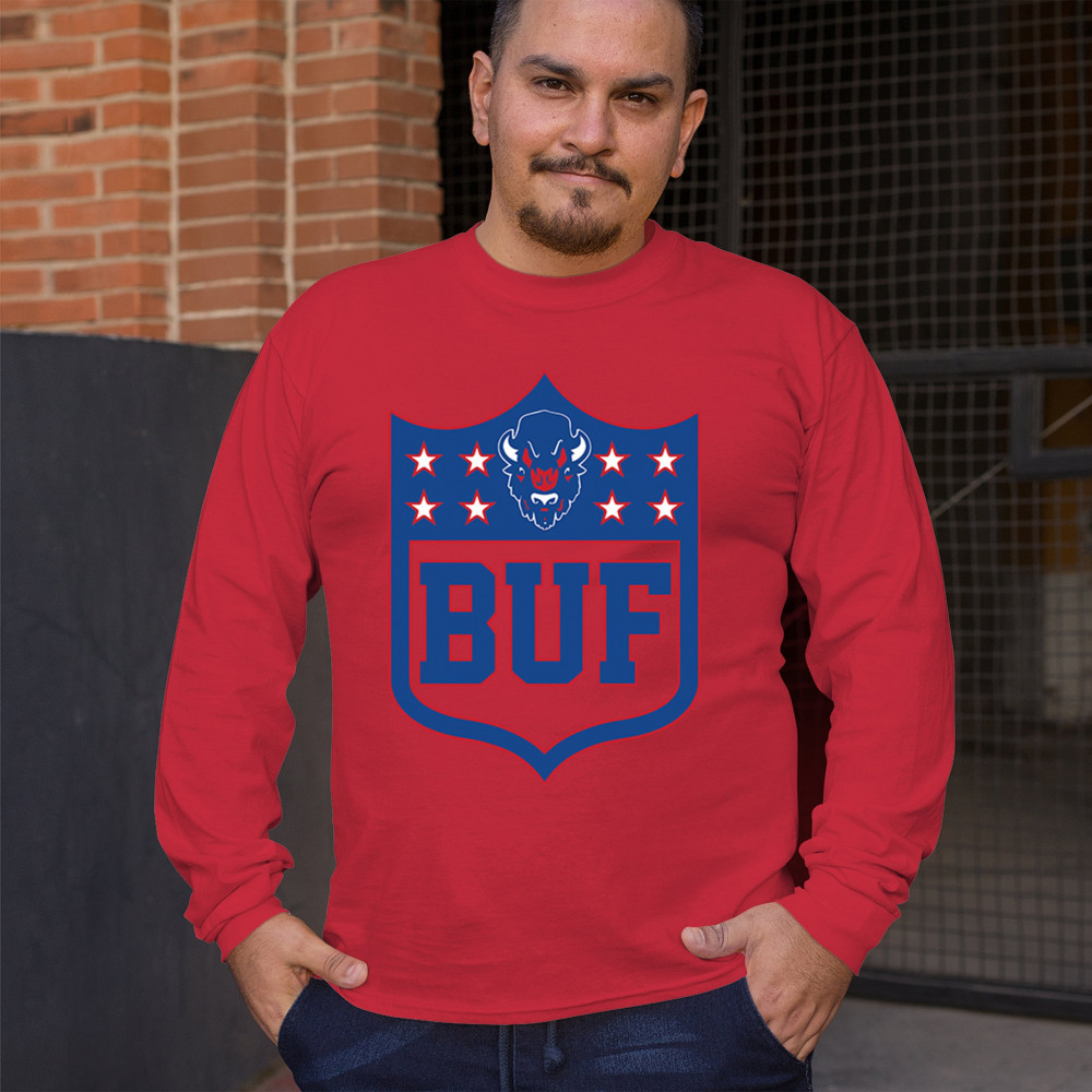 Bold Buffalo bison shield design for game day gear, tailgating, Sunday football, and championship pride in The Queen City.