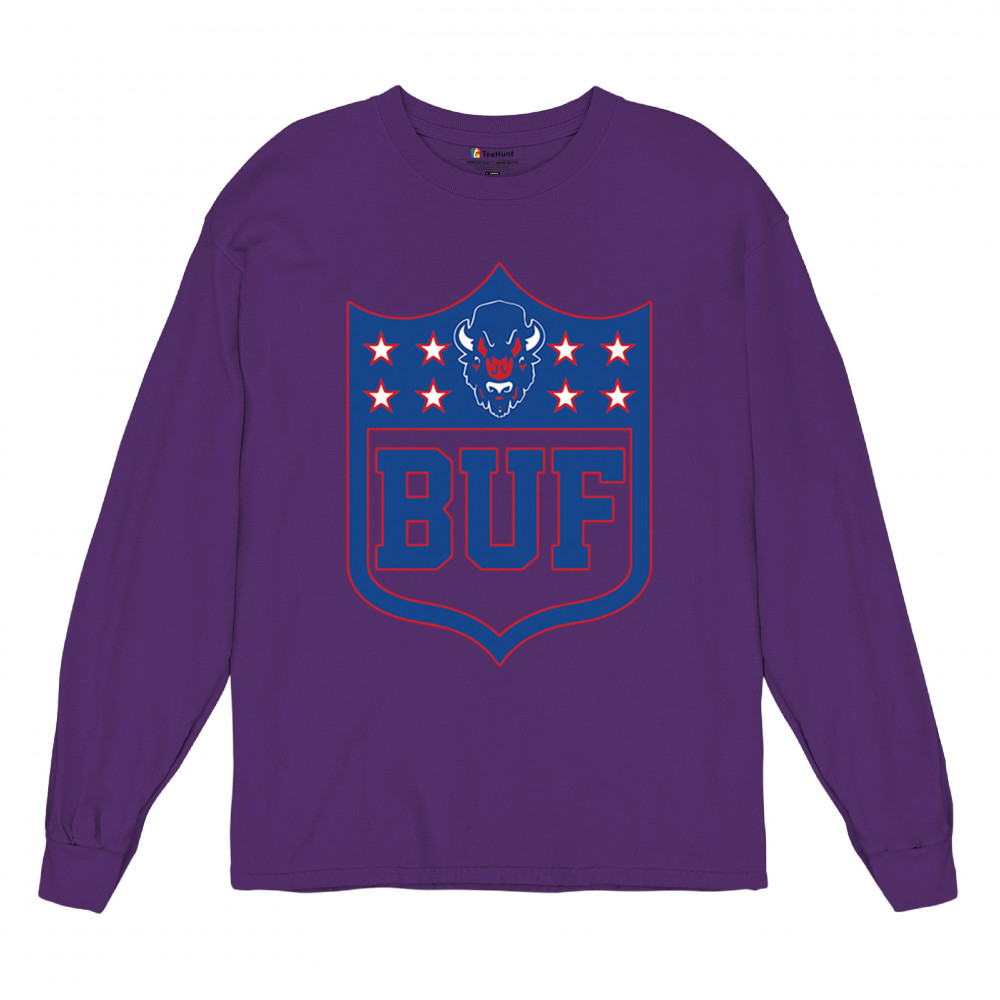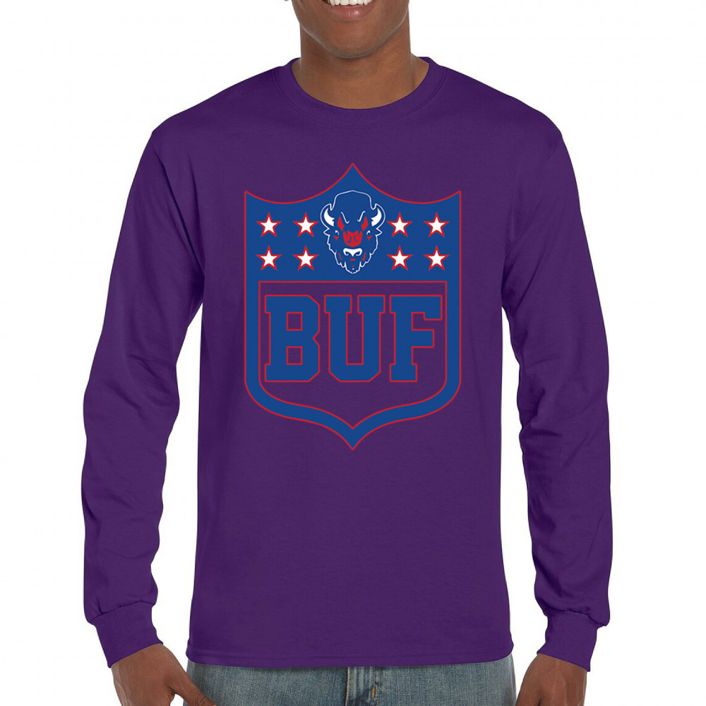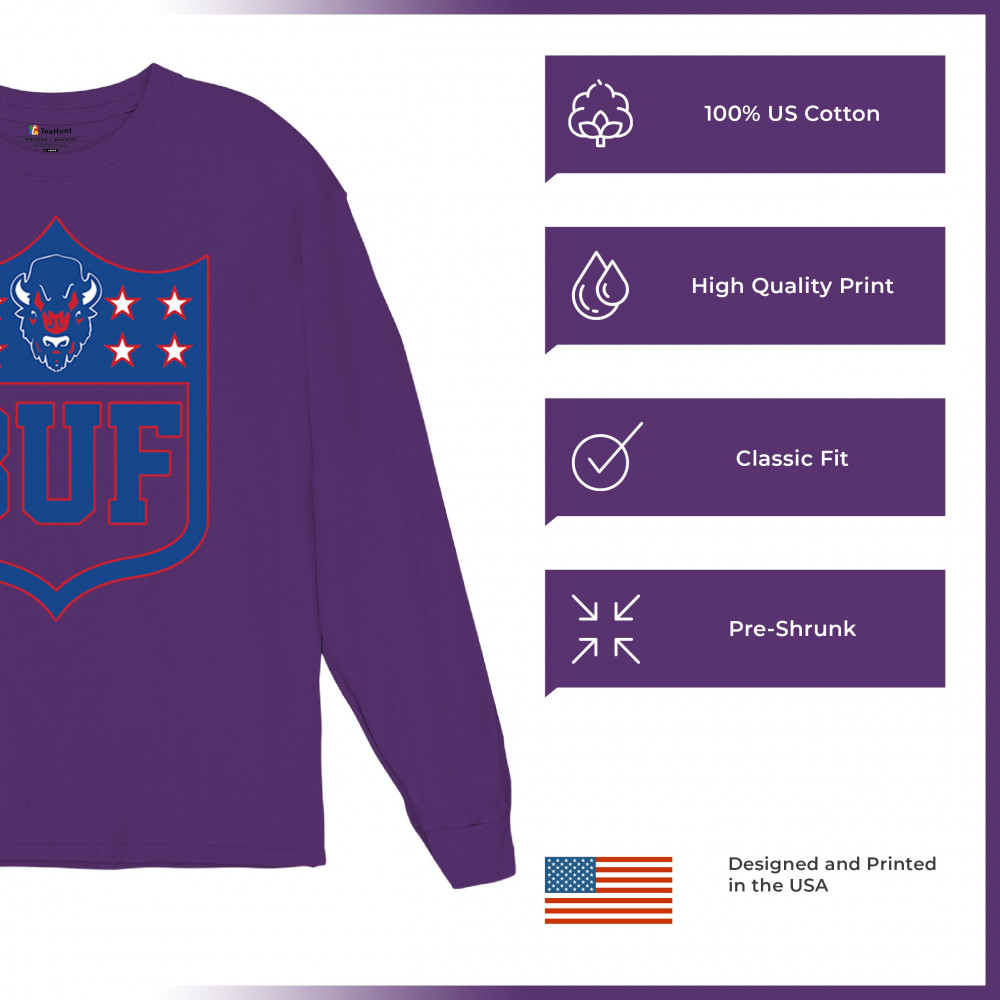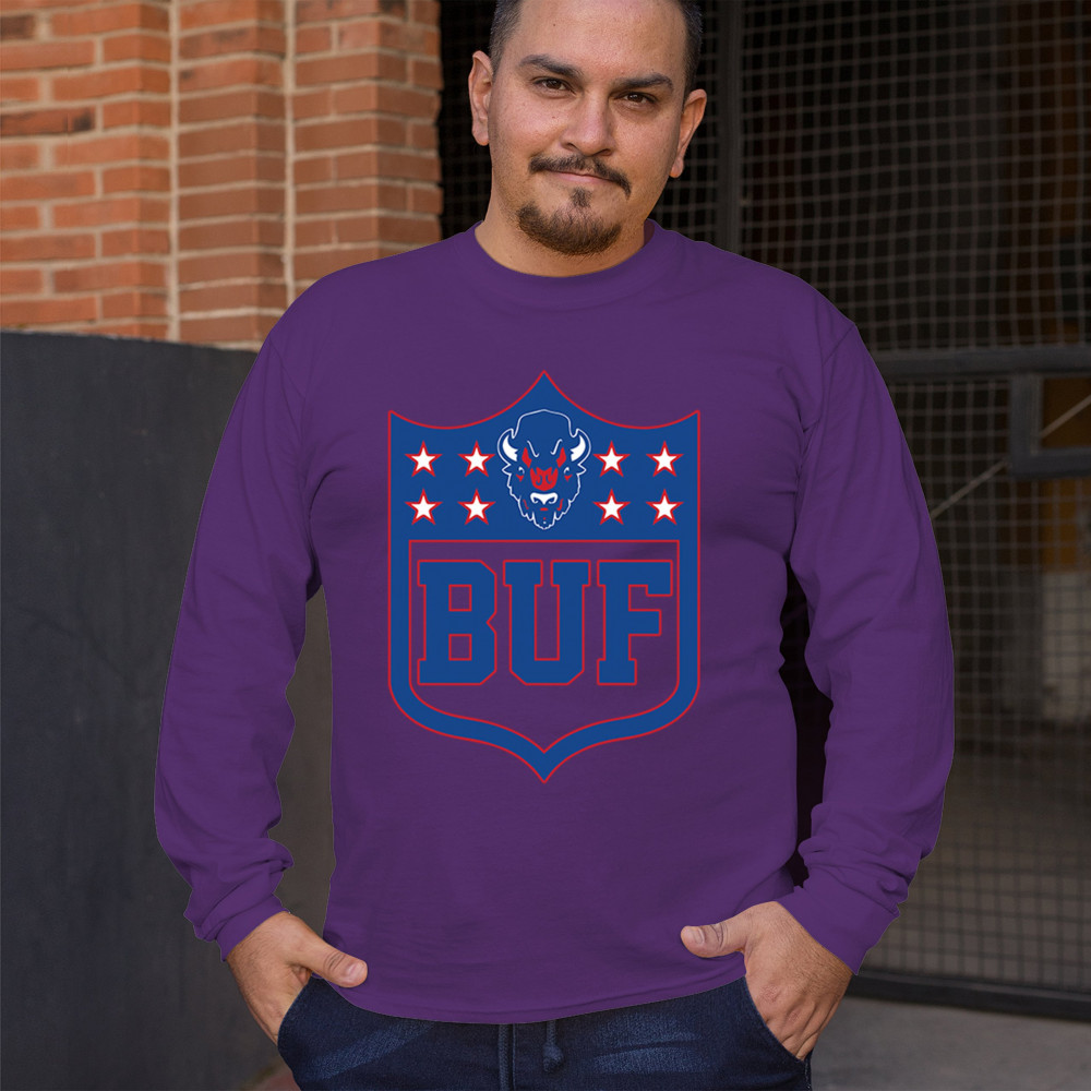 Bold Buffalo bison shield design for game day gear, tailgating, Sunday football, and championship pride in The Queen City.