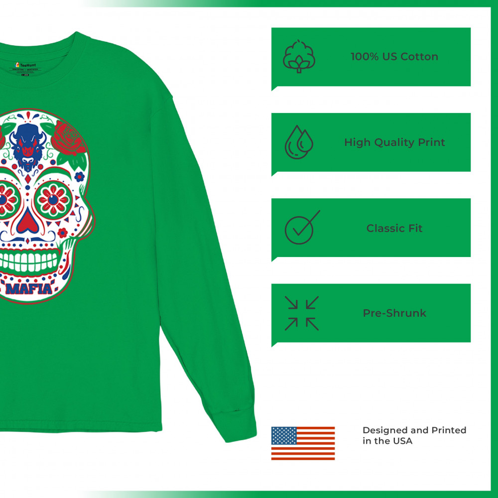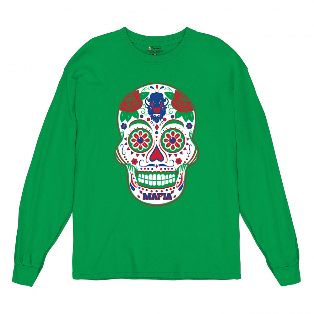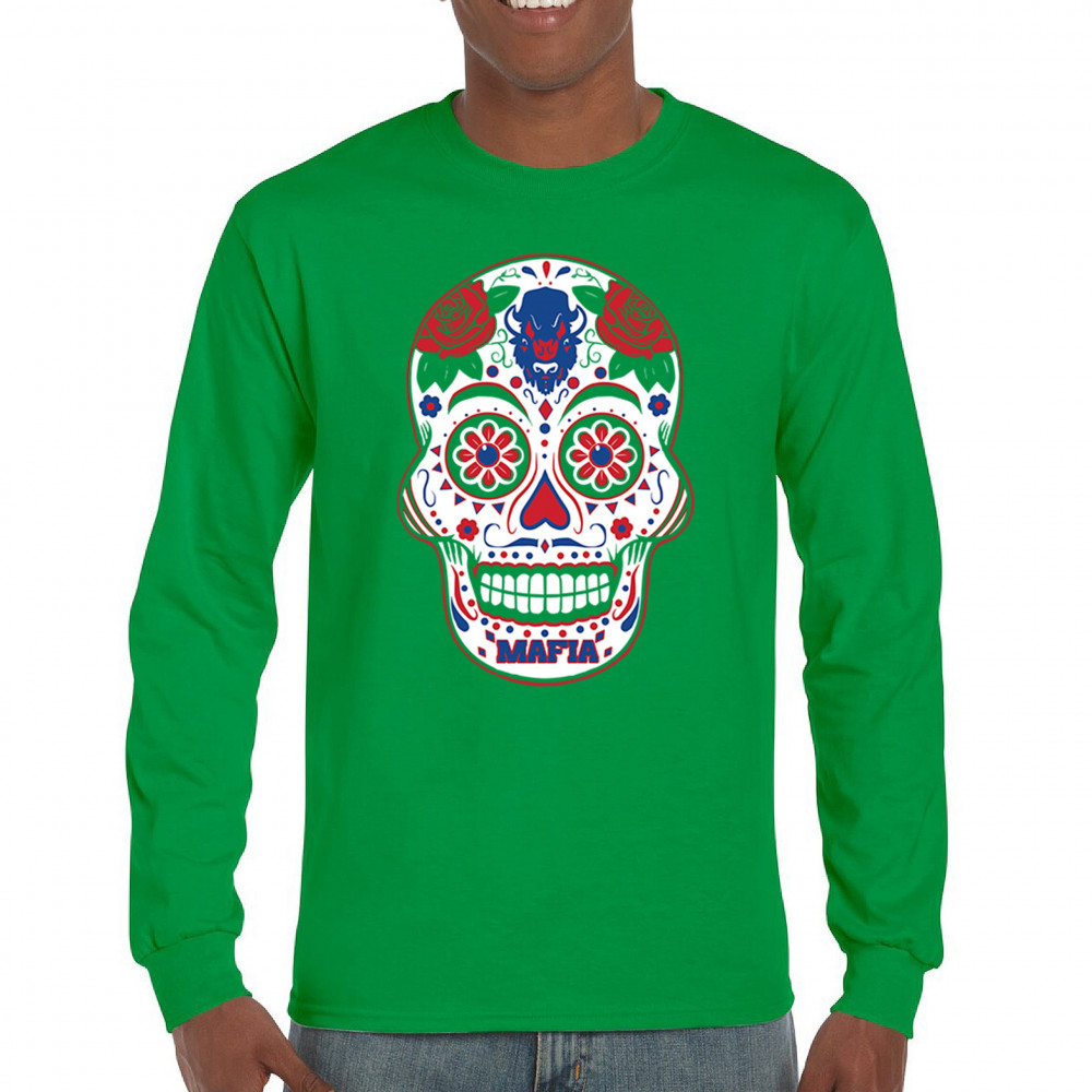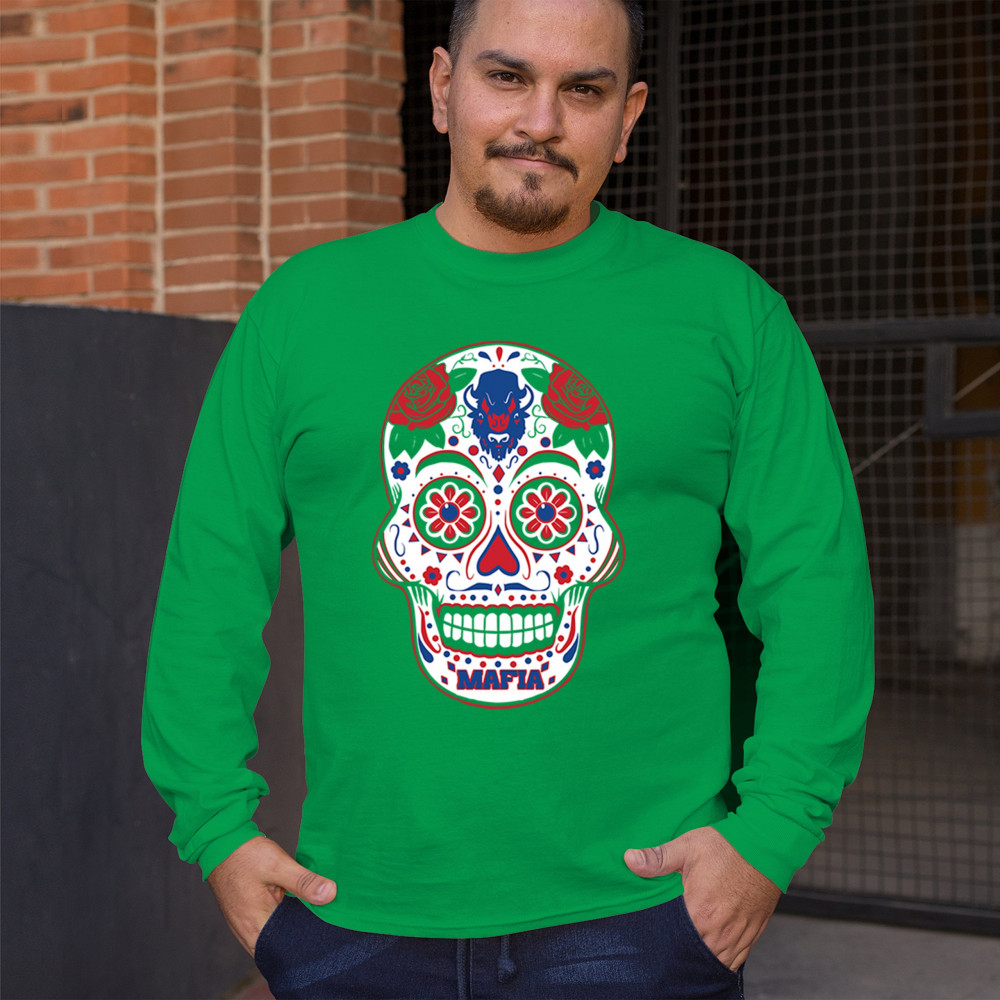 Celebrate Buffalo football with this Sugar Skull design inspired by Dia de los Muertos. Featuring NY Bleed Blue toughness, Northern Grit, and Queen City spirit, it’s made for tailgate parties, playoff energy, and fantasy football rivalries. A bold calavera for true Buffalo fans who live Game Day pride.