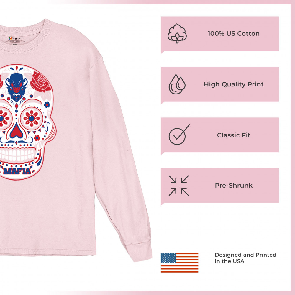 Celebrate Buffalo football with this Sugar Skull design inspired by Dia de los Muertos. Featuring NY Bleed Blue toughness, Northern Grit, and Queen City spirit, it’s made for tailgate parties, playoff energy, and fantasy football rivalries. A bold calavera for true Buffalo fans who live Game Day pride.