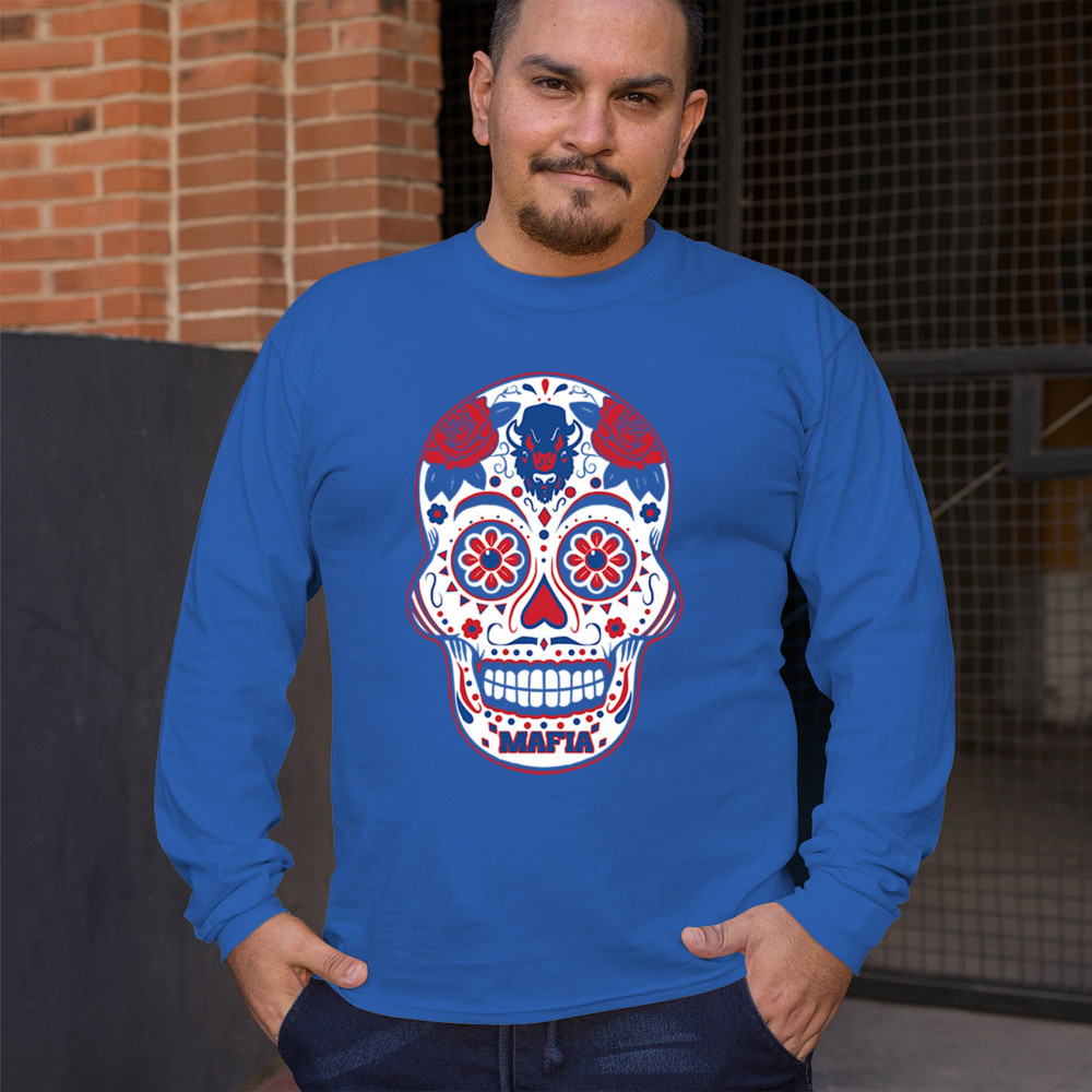 Celebrate Buffalo football with this Sugar Skull design inspired by Dia de los Muertos. Featuring NY Bleed Blue toughness, Northern Grit, and Queen City spirit, it’s made for tailgate parties, playoff energy, and fantasy football rivalries. A bold calavera for true Buffalo fans who live Game Day pride.