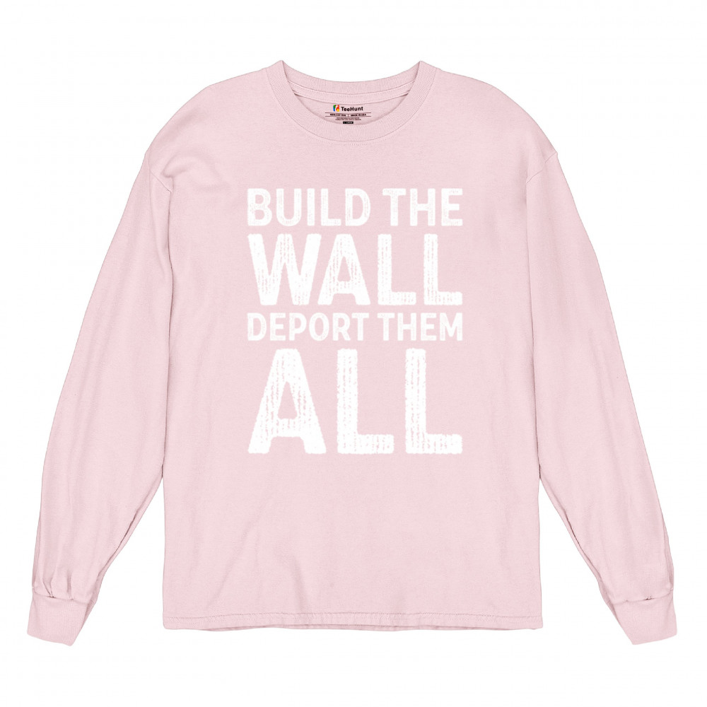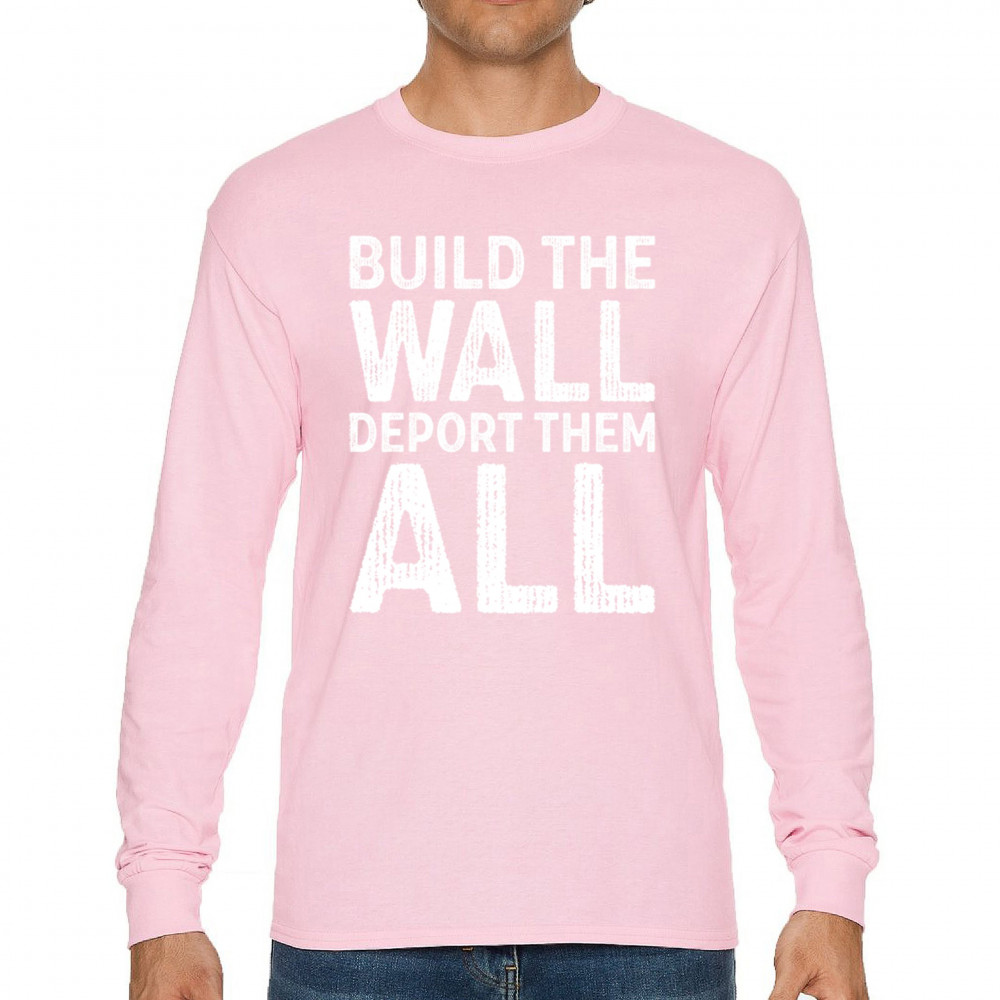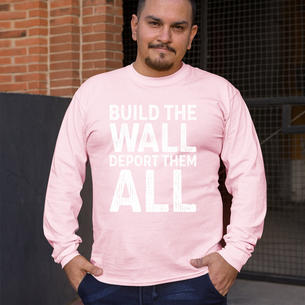 Stand strong for border security with our 'Build the Wall Deport Them All Trump 2024' tee. As a proud Trump supporter, join the America First movement and champion conservative values. Trust in God, not government, and reject the failed policies of Sleepy Joe. Let's go Brandon! Let the American flag wave high as we rally for victory in 2024.