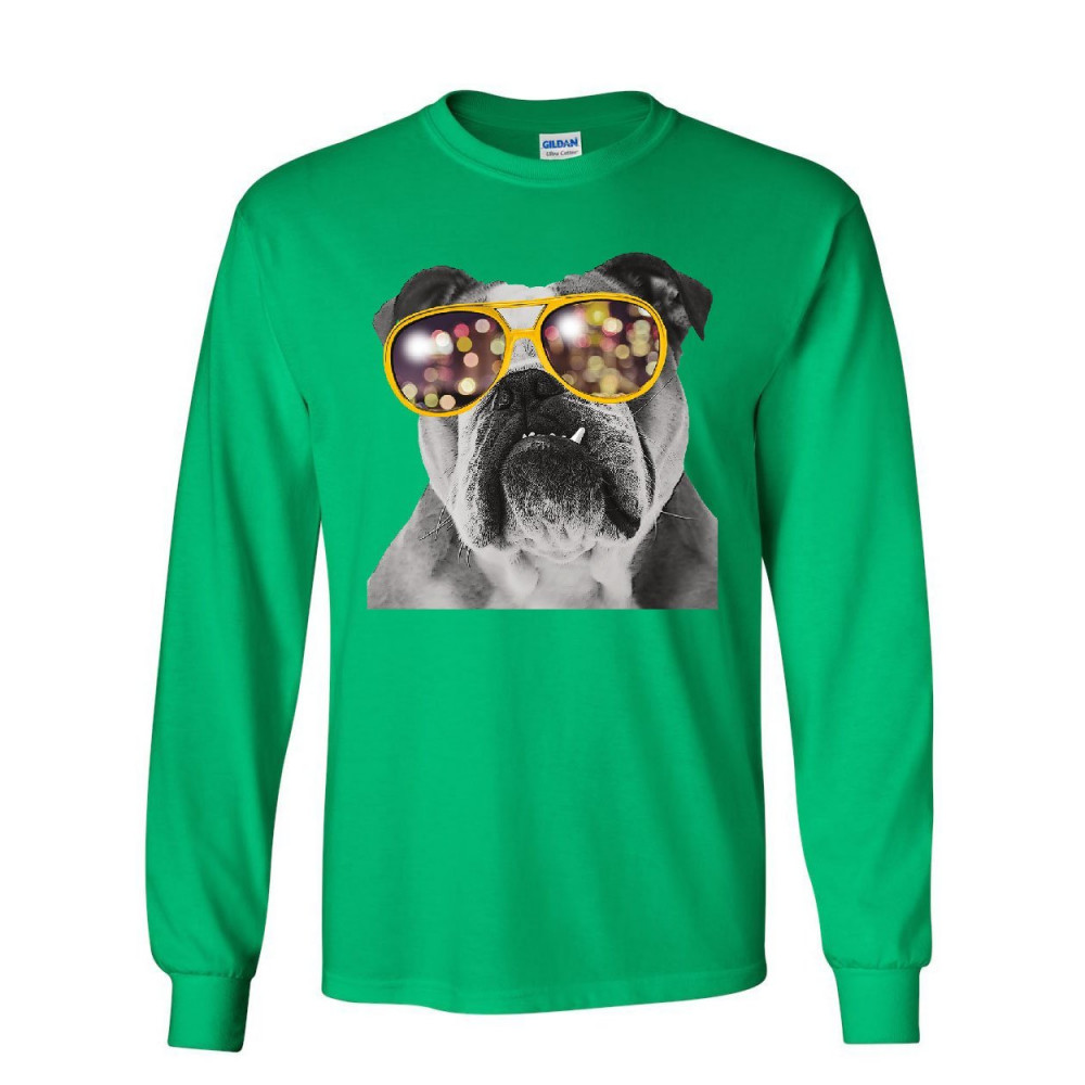 BULLDOG WEARING GLASSES long sleeve t-shirt cute dog swag pet lovers urban tee green