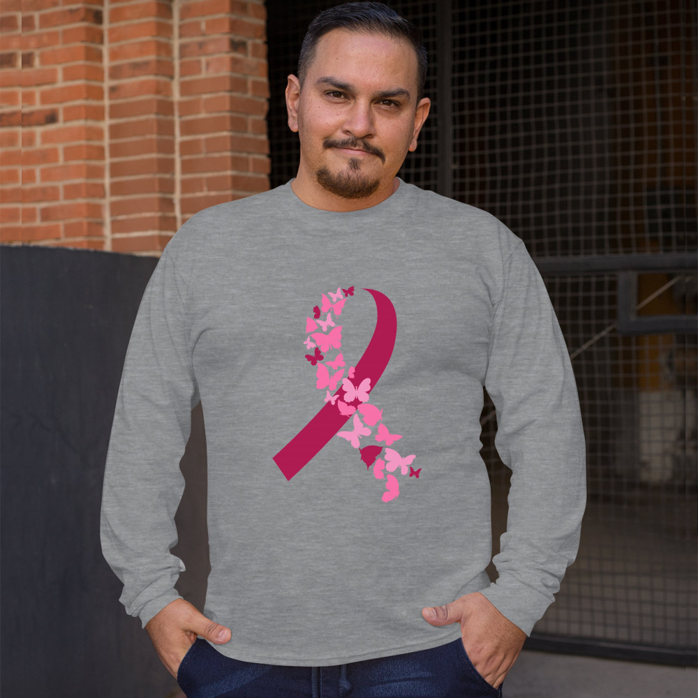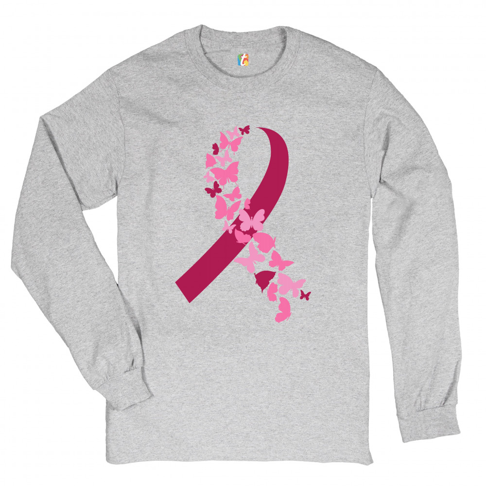 BUTTERFLIES PINK RIBBON long sleeve t-shirt breast cancer awareness hope gray