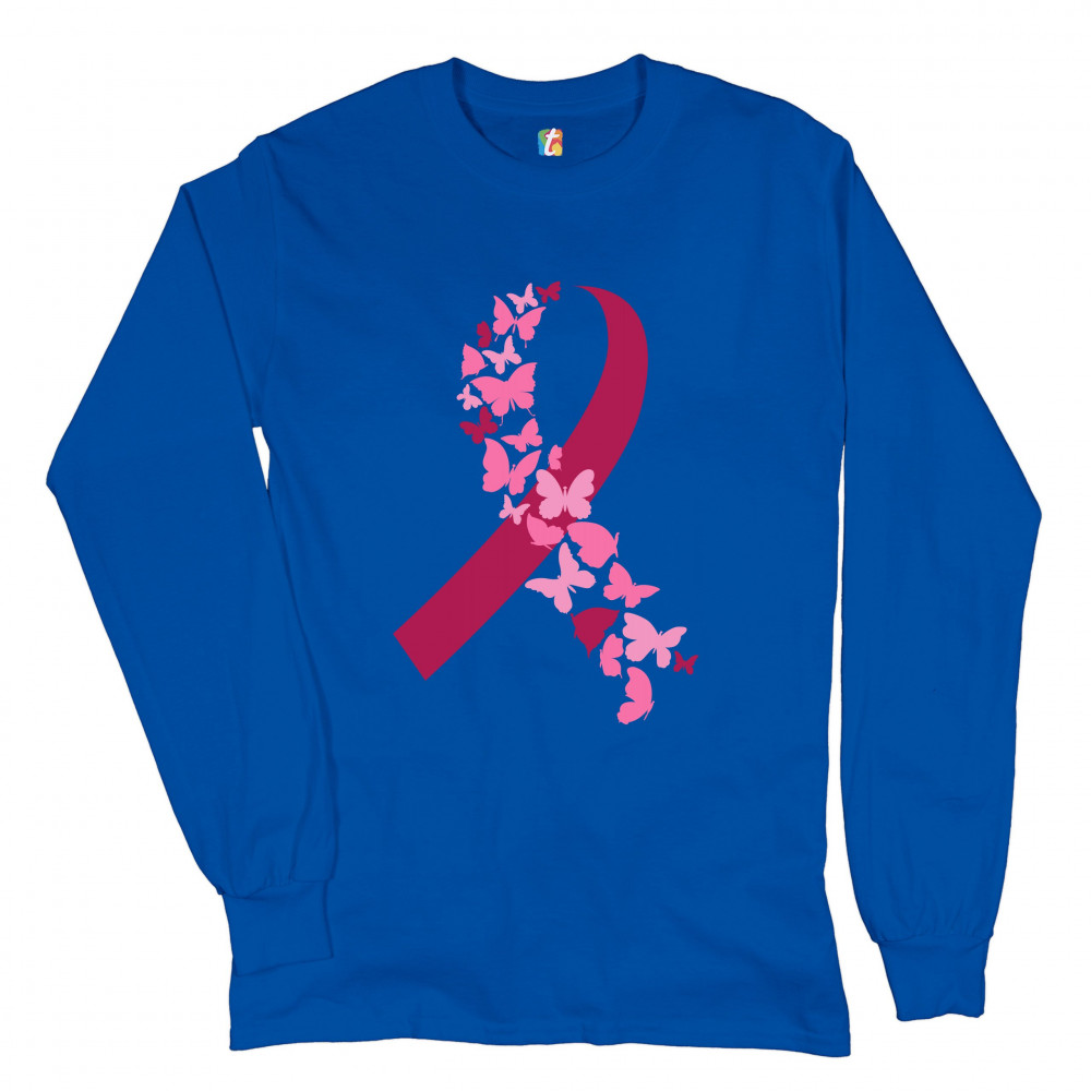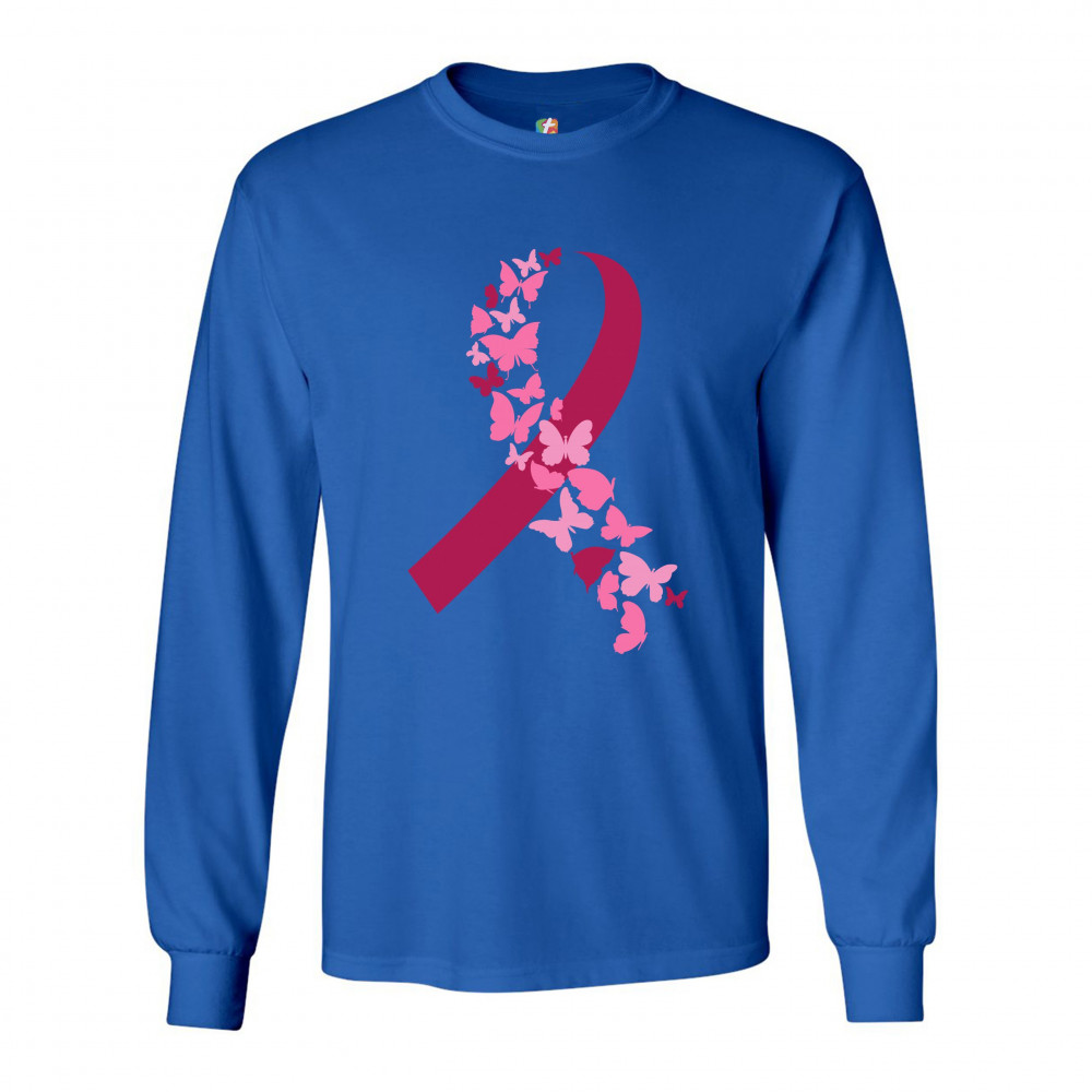BUTTERFLIES PINK RIBBON long sleeve t-shirt breast cancer awareness hope royal blue