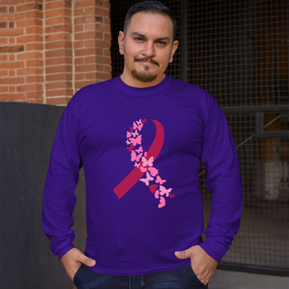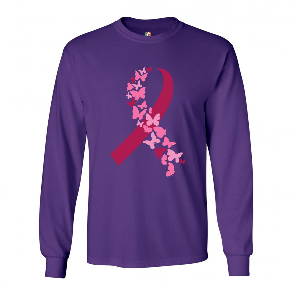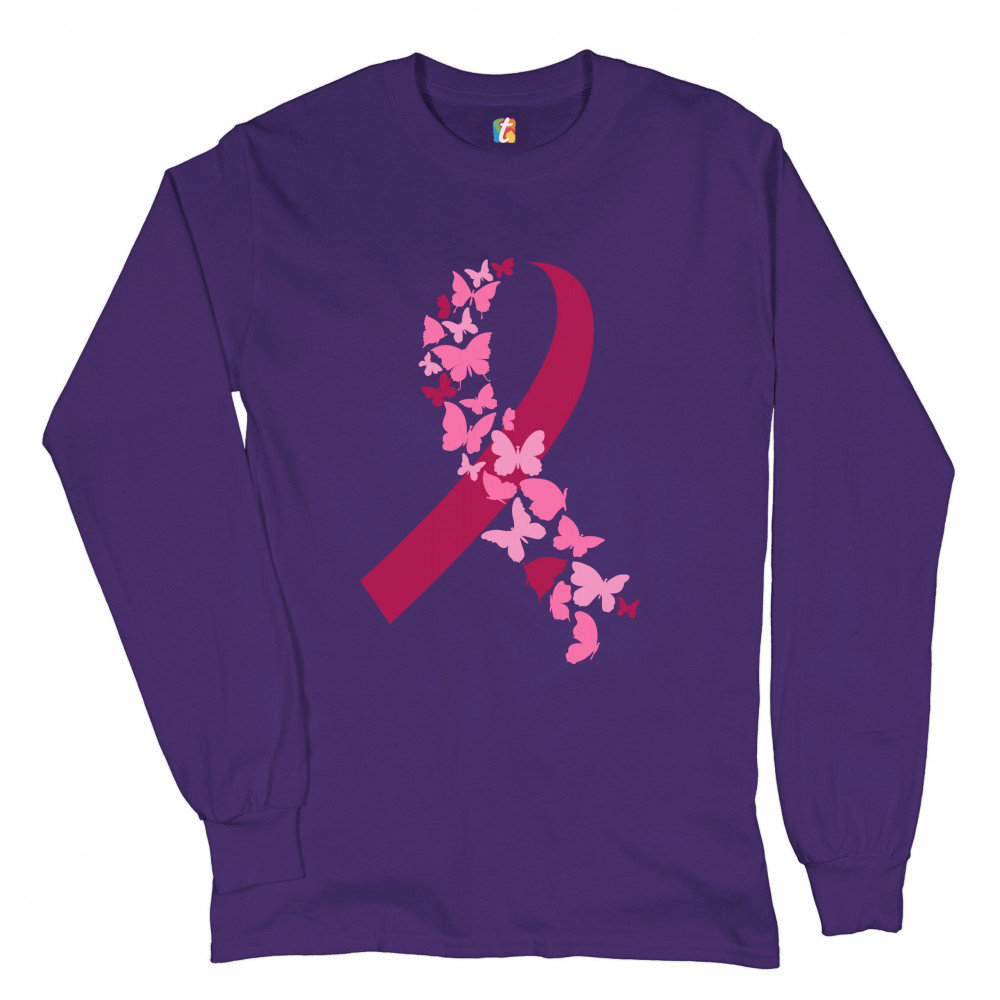 BUTTERFLIES PINK RIBBON long sleeve t-shirt breast cancer awareness hope purple