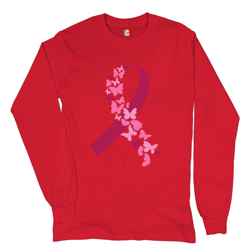 BUTTERFLIES PINK RIBBON long sleeve t-shirt breast cancer awareness hope red