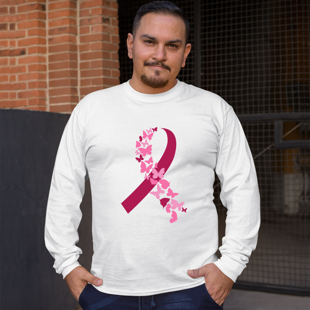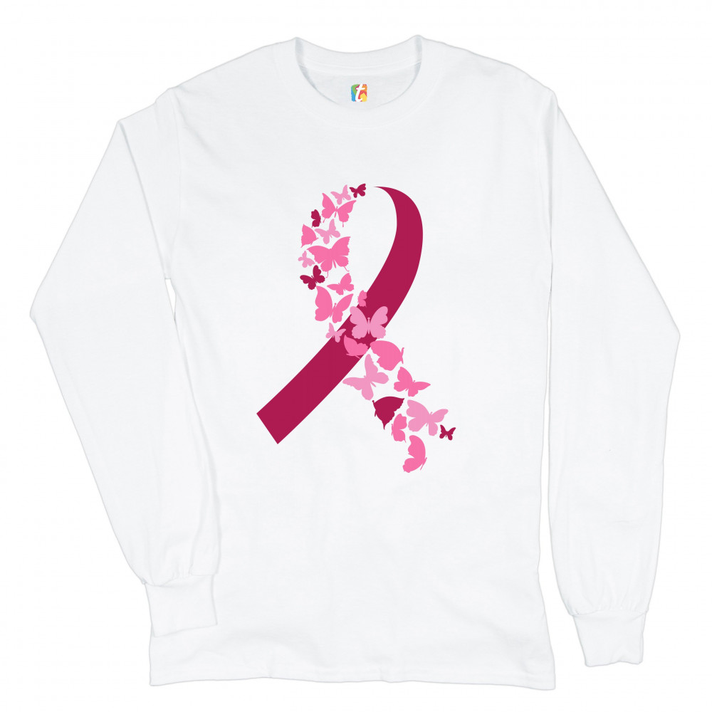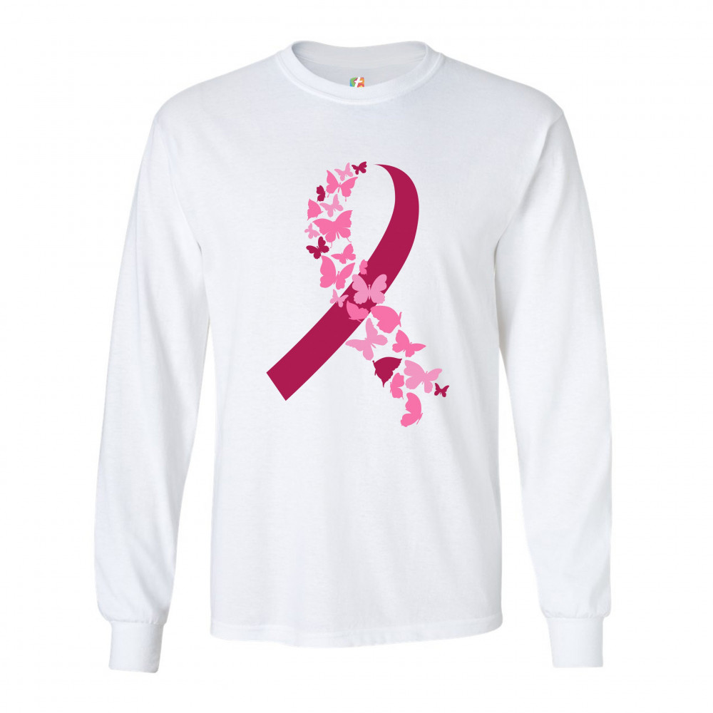 BUTTERFLIES PINK RIBBON long sleeve t-shirt breast cancer awareness hope white
