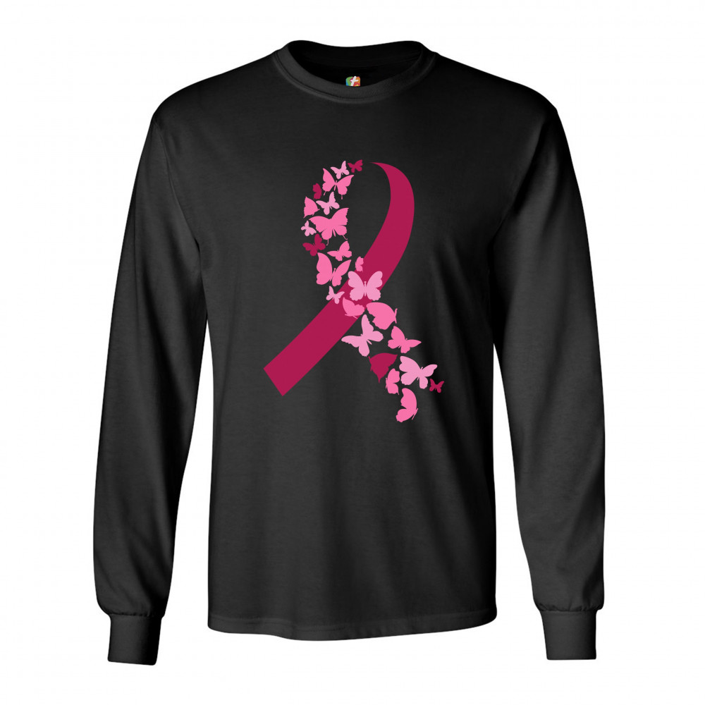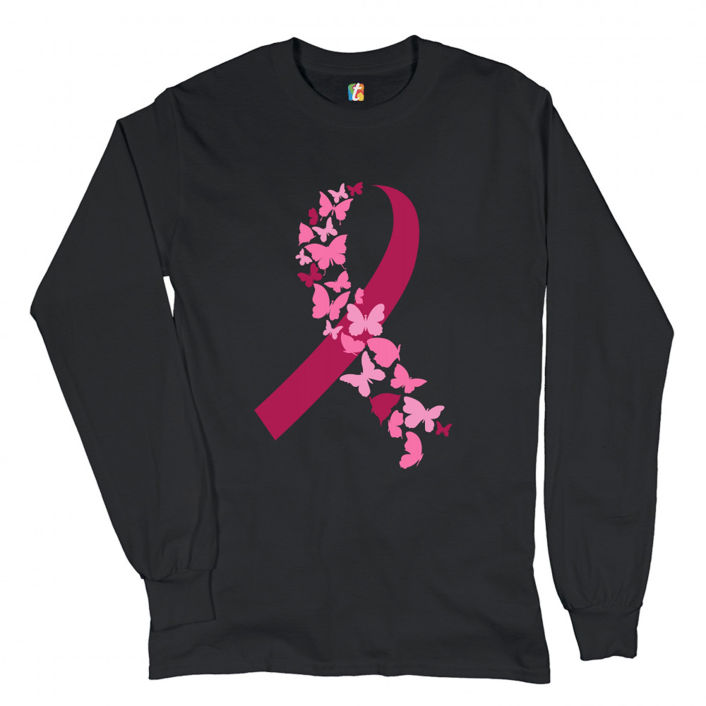 BUTTERFLIES PINK RIBBON long sleeve t-shirt breast cancer awareness hope black