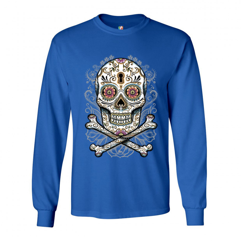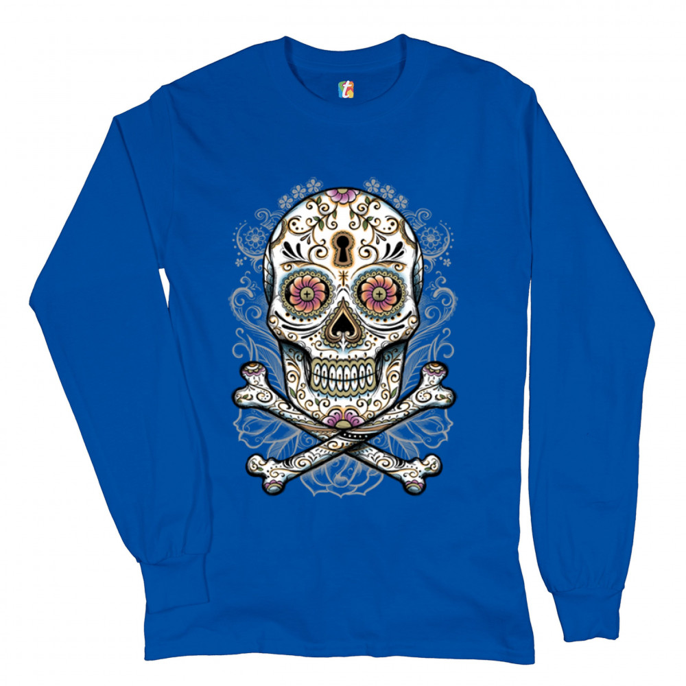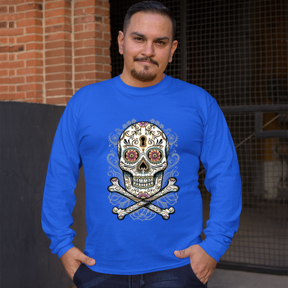 CALAVERA SUGAR SKULL long sleeve t-shirt mexican day of the dead dia de muertos royal blue