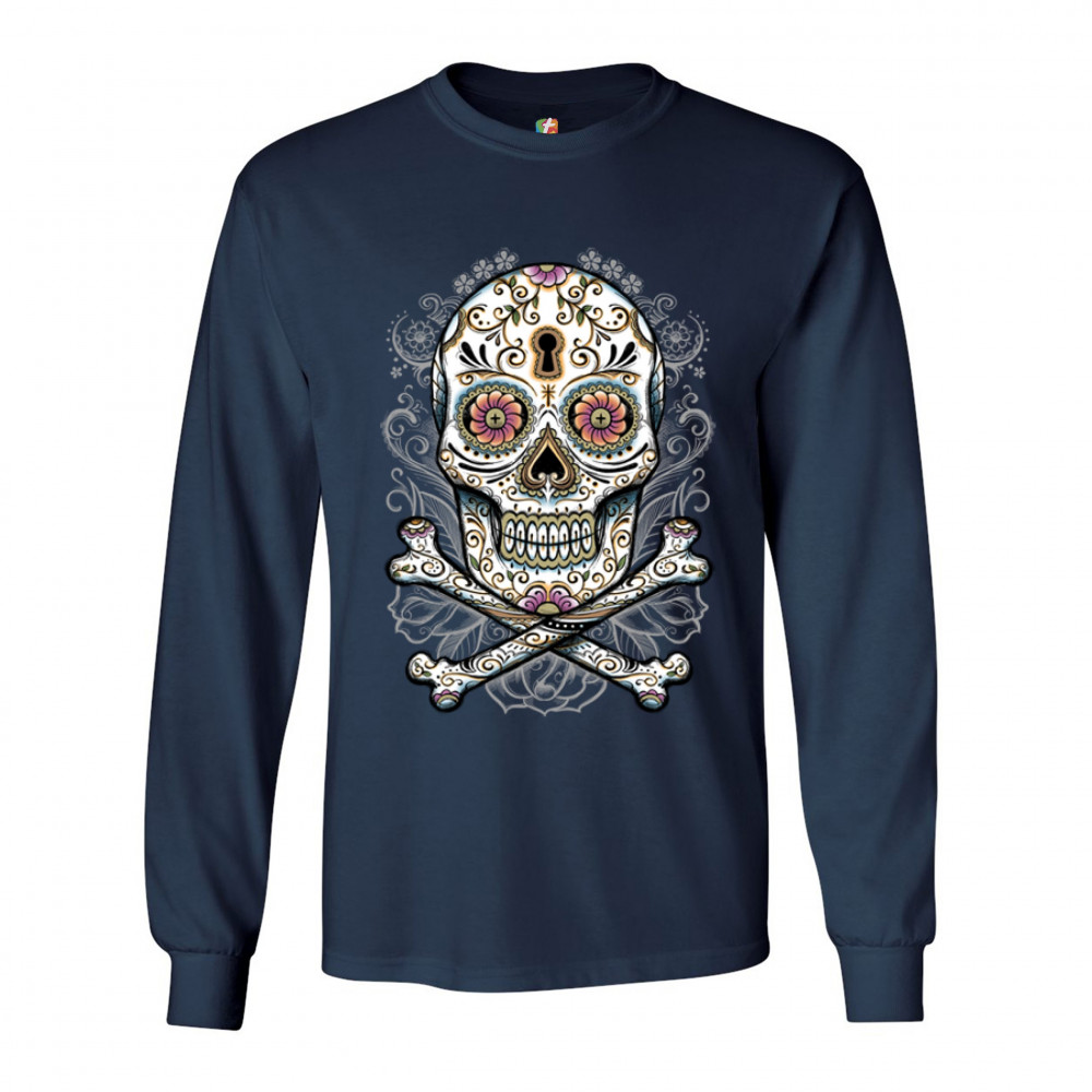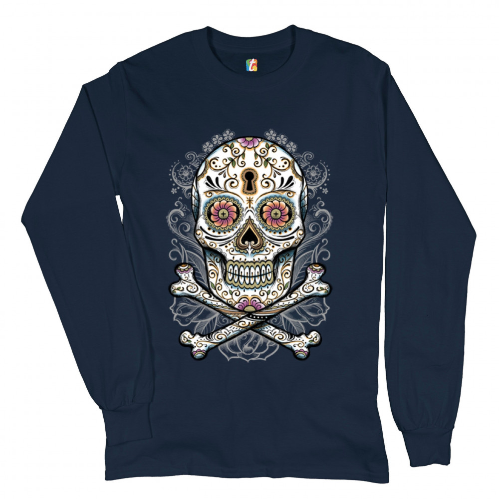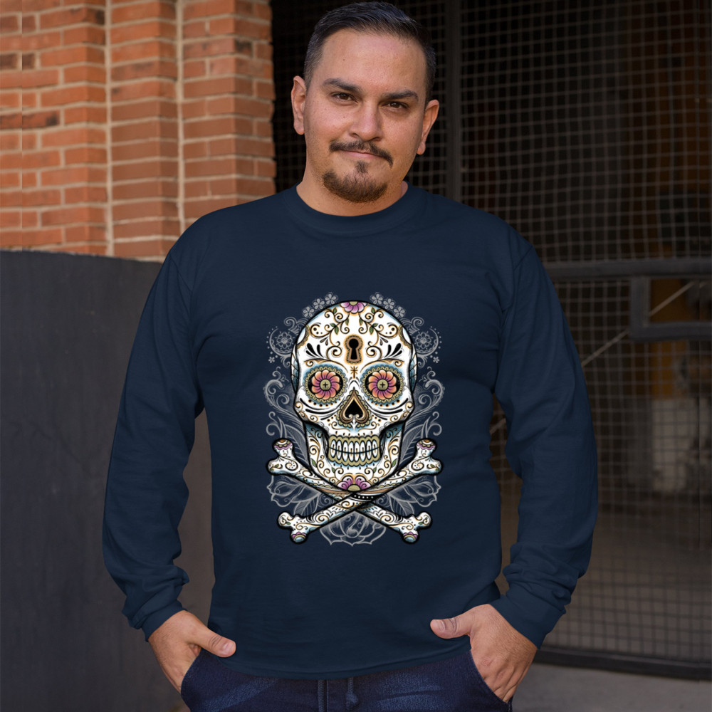 CALAVERA SUGAR SKULL long sleeve t-shirt mexican day of the dead dia de muertos navy blue