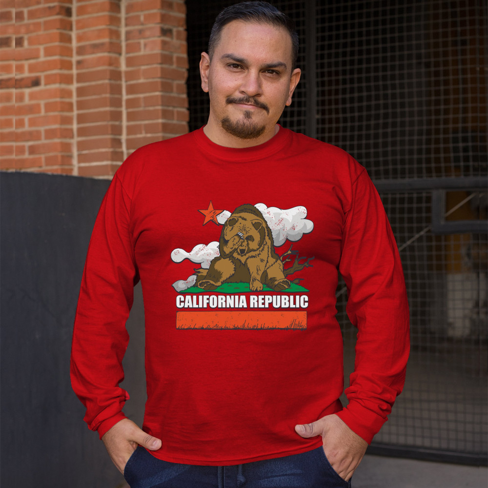 CALIFORNIA BEAR FACEPALM long sleeve t-shirt the great california exodus red