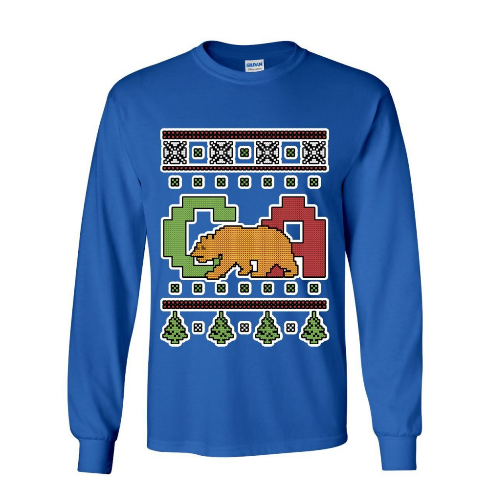 CALIFORNIA REPUBLIC UGLY SWEATER long sleeve t-shirt christmas xmas ca bear tee royal blue