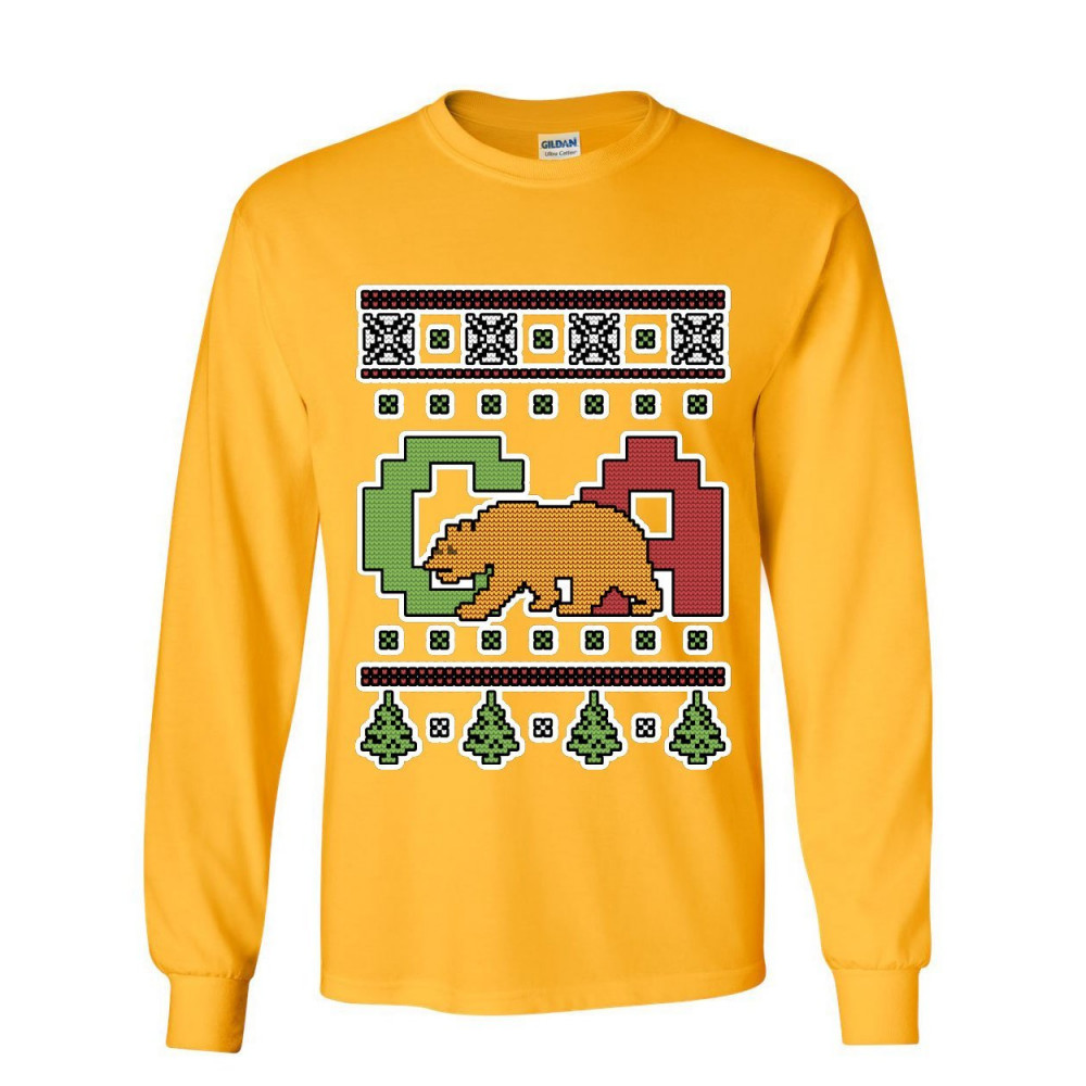 CALIFORNIA REPUBLIC UGLY SWEATER long sleeve t-shirt christmas xmas ca bear tee yellow