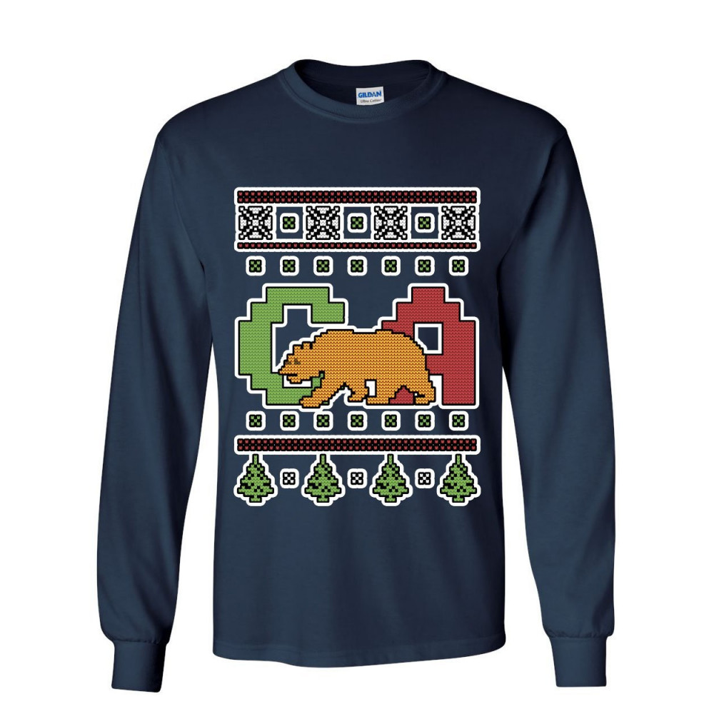 CALIFORNIA REPUBLIC UGLY SWEATER long sleeve t-shirt christmas xmas ca bear tee navy blue
