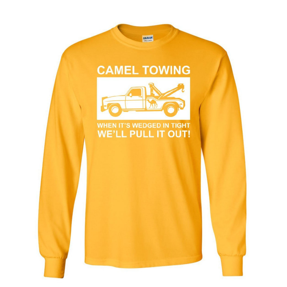 CAMEL TOWING PULL IT OUT long sleeve t-shirt funny naughty adult camel toe tee yellow