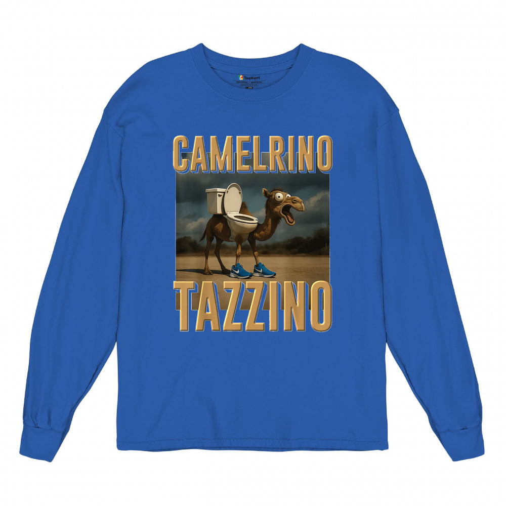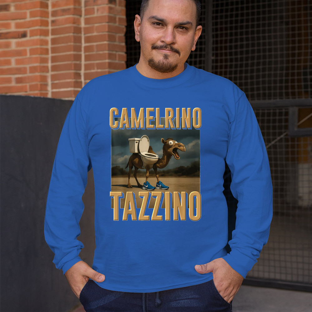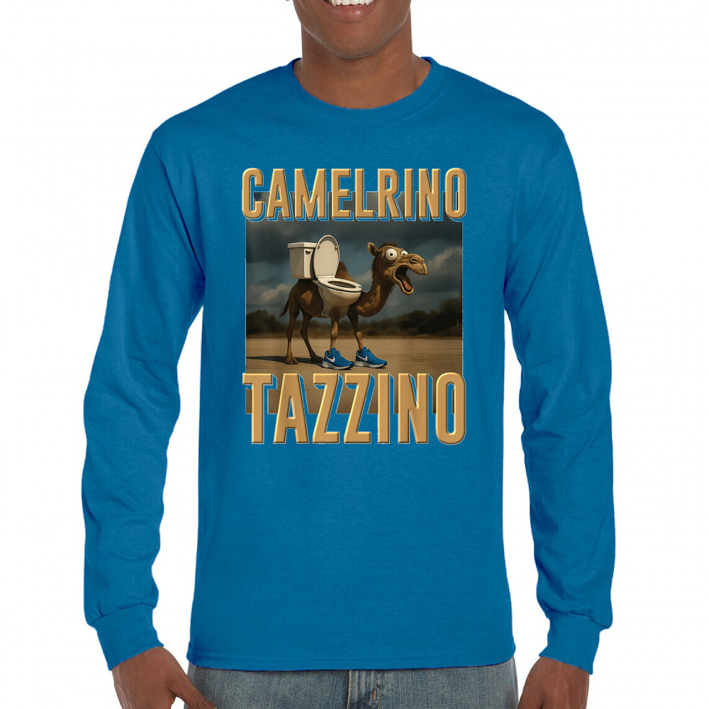 Camelrino Tazzino fuses toilet-core fashion, cursed camel chaos, TikTok meme humor, surreal animal design, and Gen Z absurdity.
